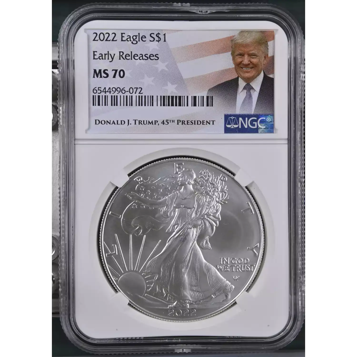 | Name | 2022 American Silver Eagle NGC MS70 Early Release (White core/Trump Label) |