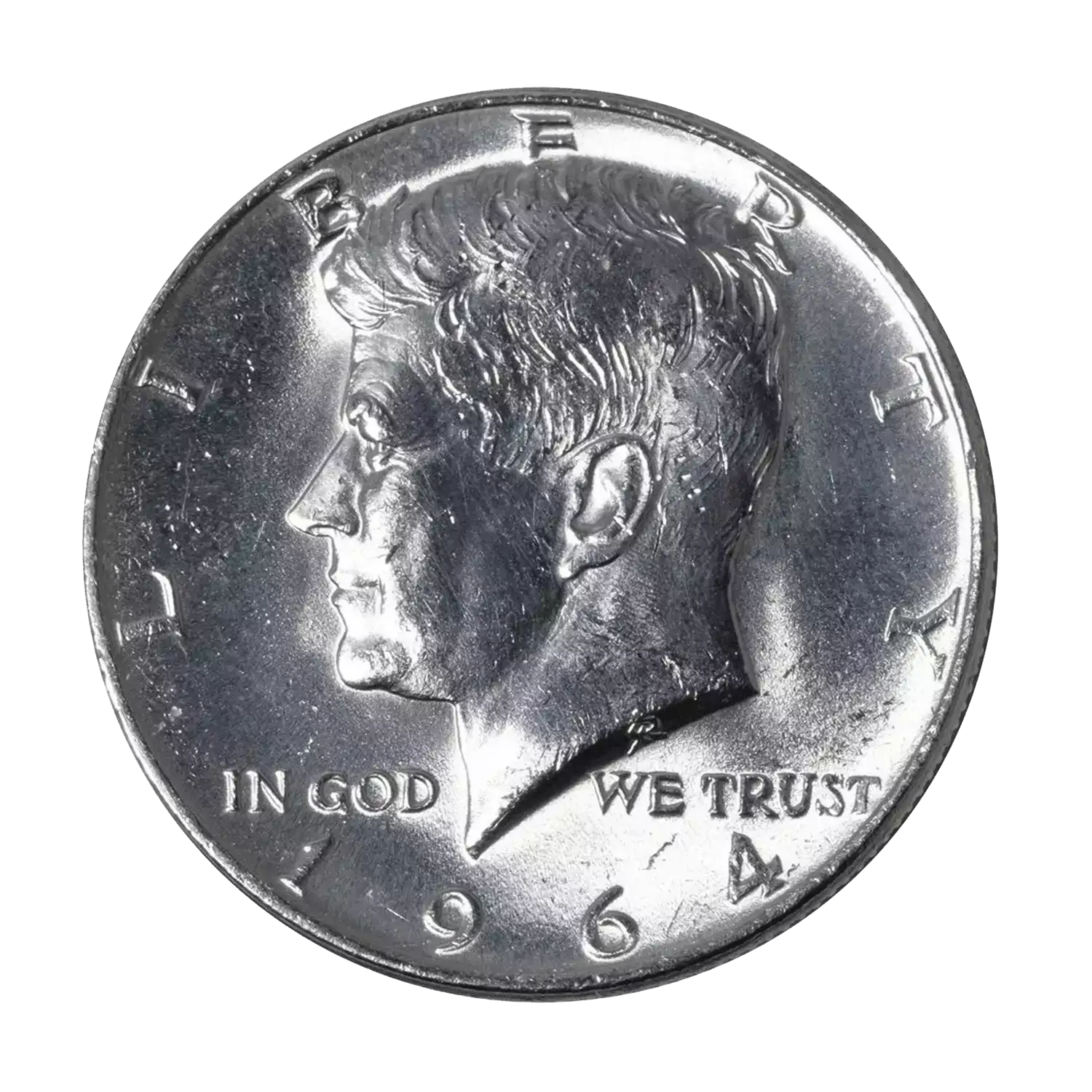 On the obverse side of 90% Silver Kennedy Half Dollars is the left-profile bust of President John F. Kennedy. The design was created earlier in the 1960s by Gilroy Roberts for the John F. Kennedy Presidential series of medals and was repurposed after his assassination for use on the half dollar.