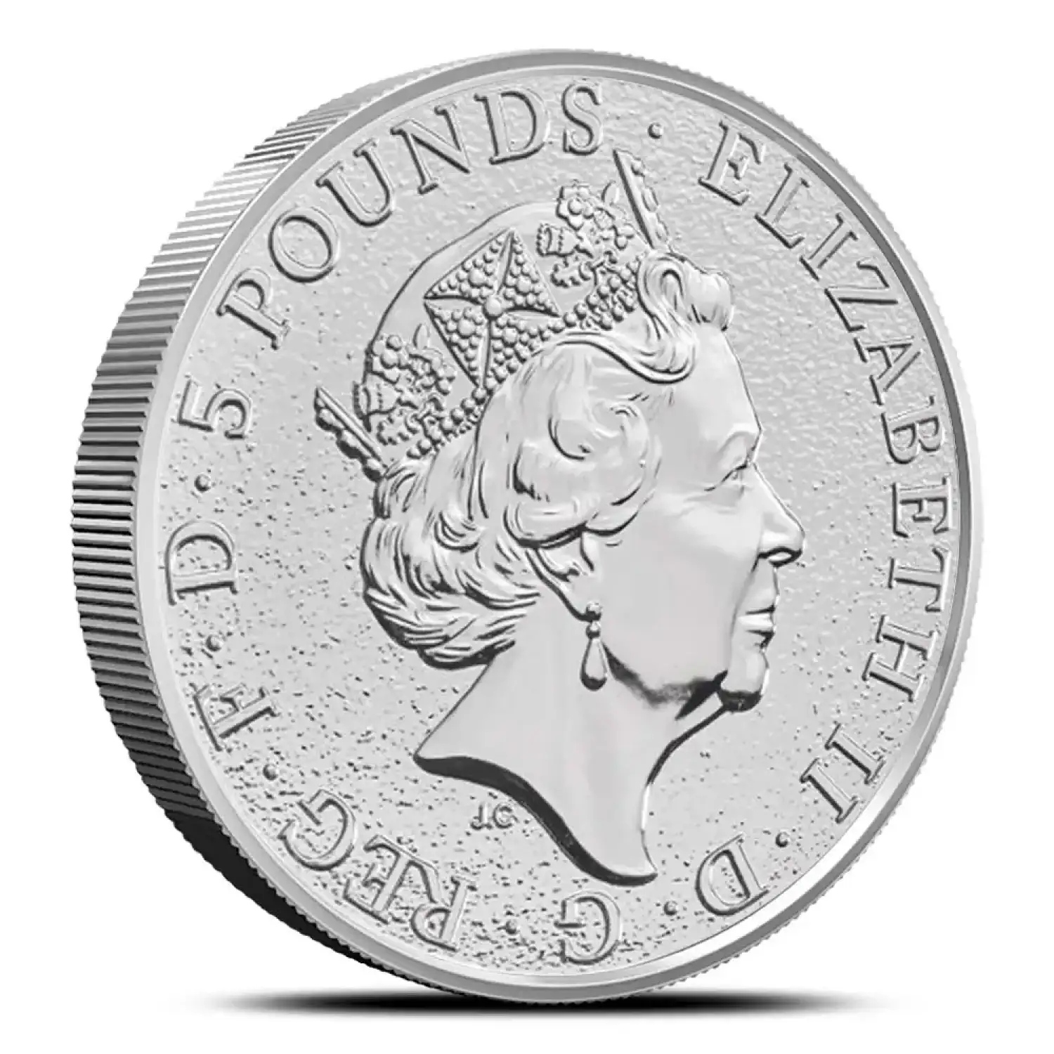 One of the most exciting new programs from the Royal Mint in London is the Queen’s Beast Collection. This 10-coin offering from one of the world’s oldest minting facilities includes new designs each year, all representative of the creatures captured in statue form during the coronation of Queen Elizabeth II. Today, the 2017 2 oz British Silver Queen’s Beast Dragon Coin.