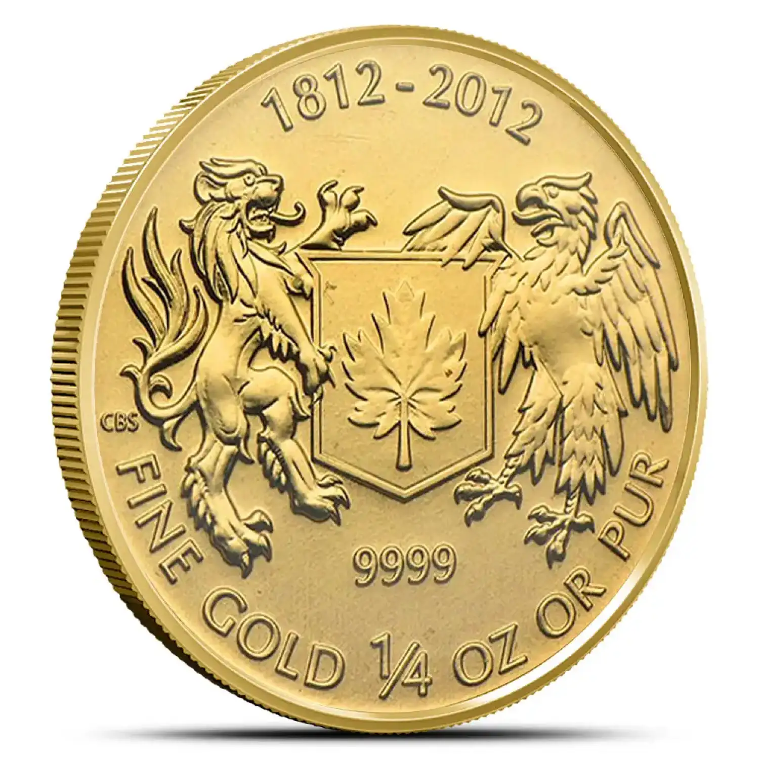 Each ¼ oz War of 1812 Gold Coin offered in this listing comes from the Royal Canadian Mint. The first shots of the War of 1812 were actually fired in 1811 at the Battle of Tippecanoe in the US state of Indiana, and the final shots were fired weeks after a cease-fire was agreed to when Americans decimated a British attack force in New Orleans.