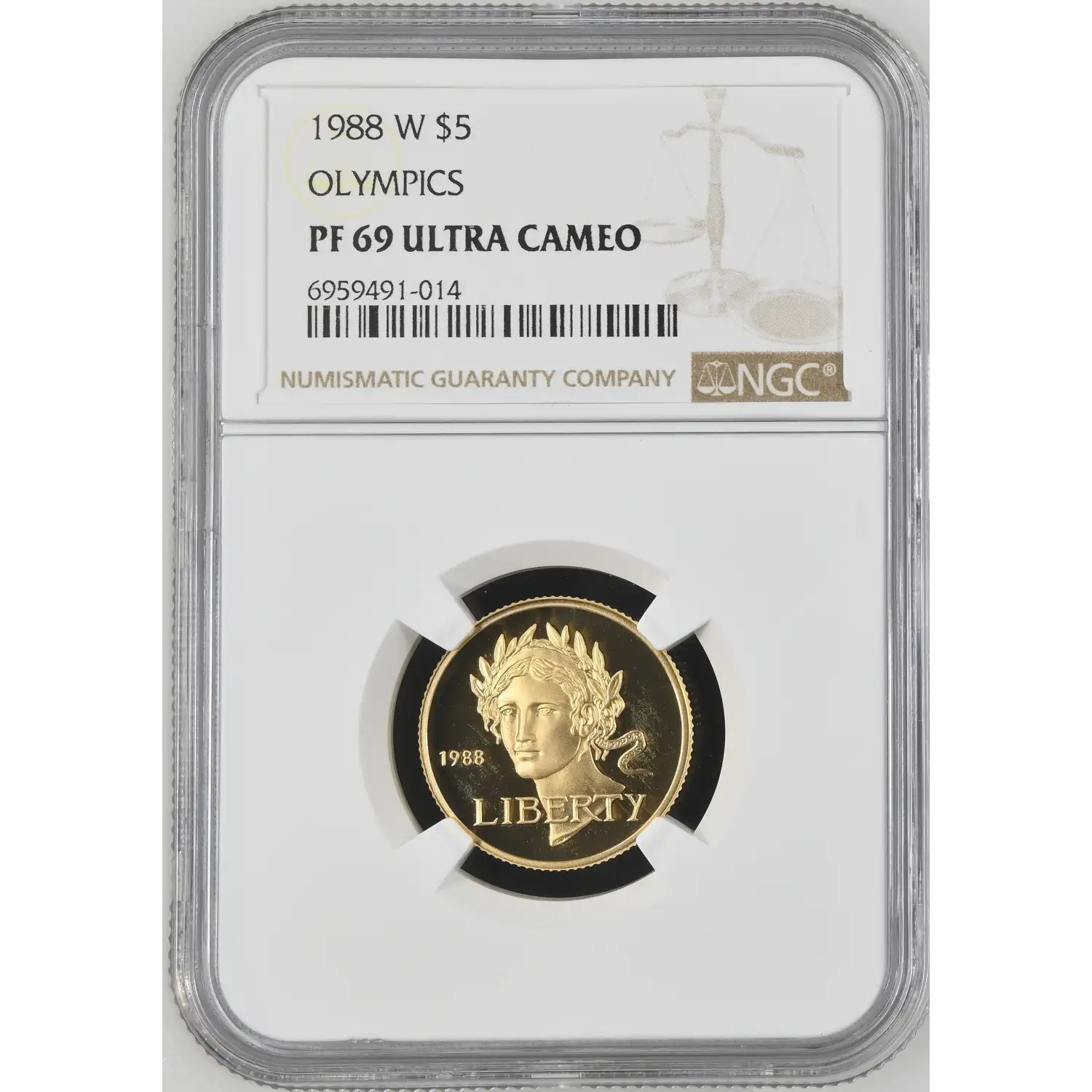 This $5 Gold coin was issued to commemorate the participation of the United States in the 1988 Olympic Games held in Seoul, Korea.