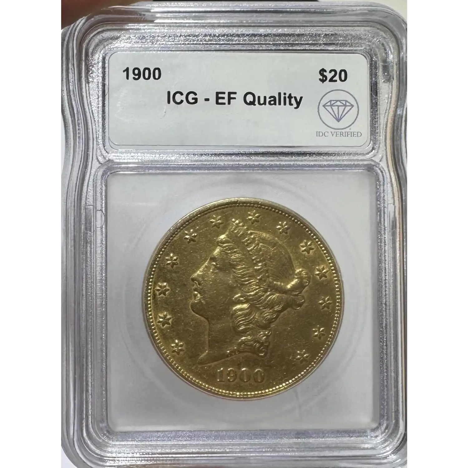 The 1900 $20 Gold is part of a series of Twenty Dollar Gold Double Eagle coins struck from 1849-1907. Struck in Philadelphia and designated as a Business (MS) strike, this coin is made of 90% gold; 10% copper from a mintage of 1,874,460 struck.