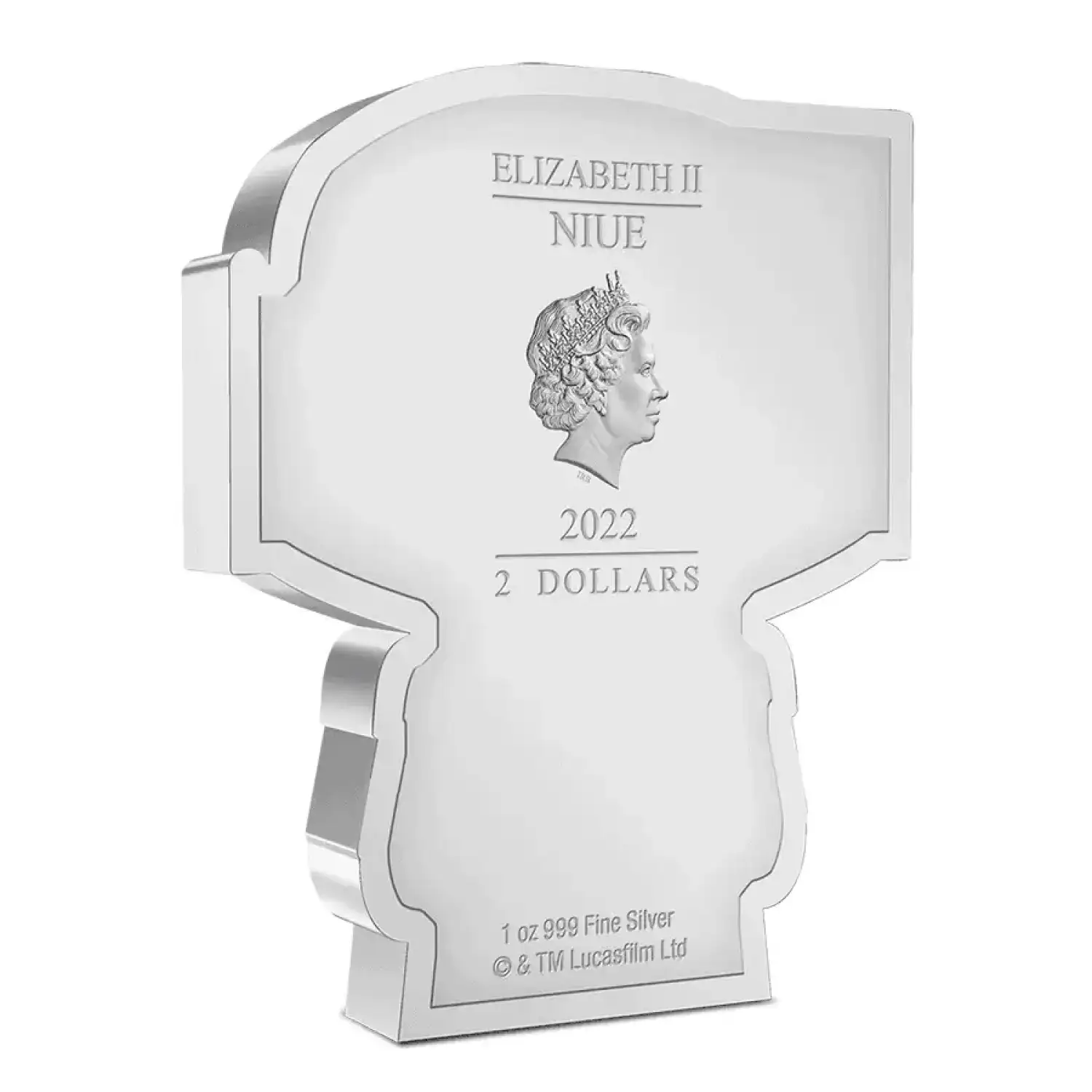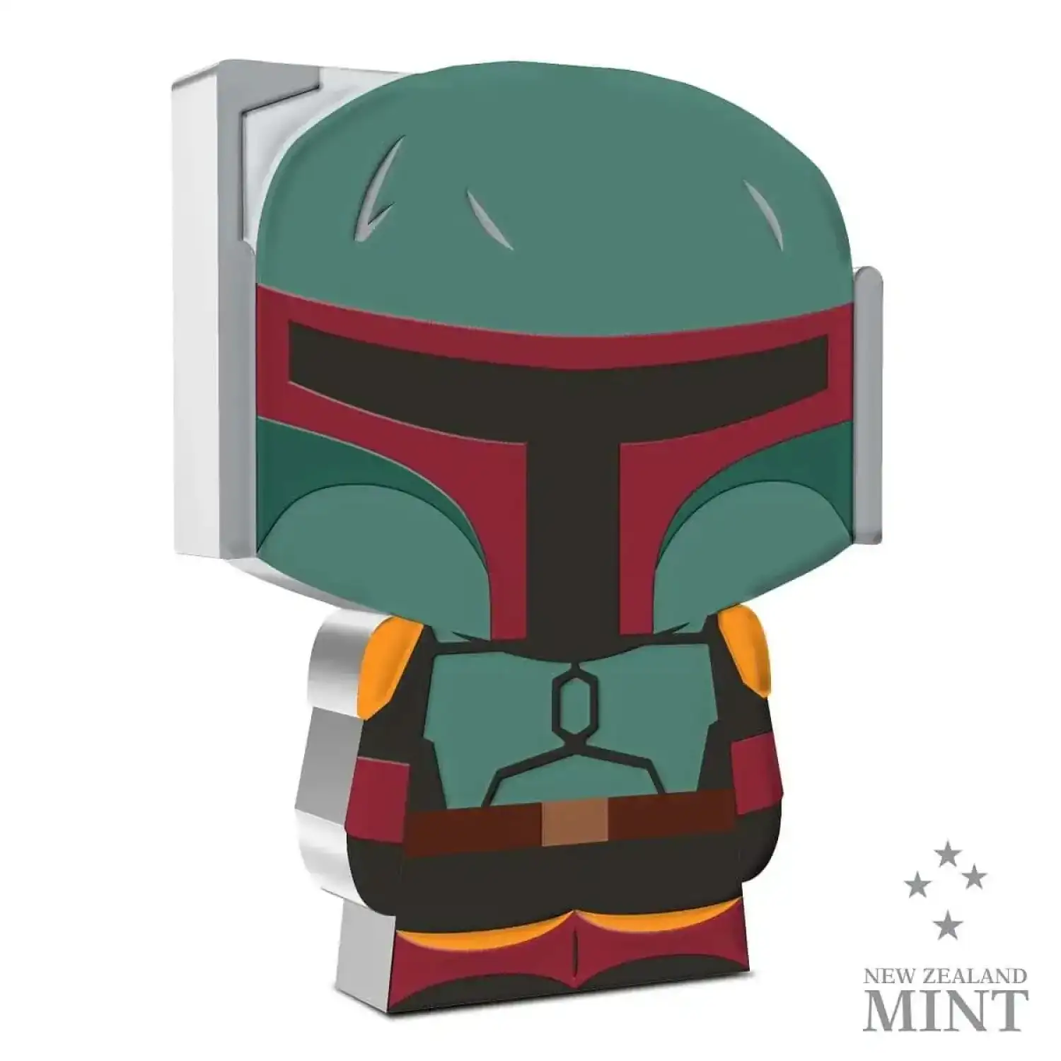 Made from 1oz of pure silver, this officially licensed Chibi® Coin is shaped and coloured to show Boba Fett™ as he appears in the Lucasfilm series, The Book of Boba Fett™. This unique Star Wars™ collectible is placed inside a custom-made case moulded to the coin’s shape, for protection. The Ian Rank Broadley effigy of Her Majesty Queen Elizabeth II is found on the obverse of the coin and confirms it as legal tender.