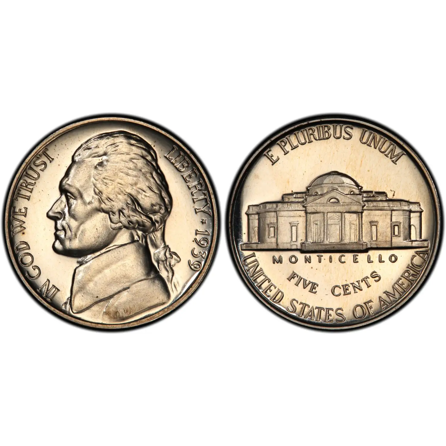 Obverse: Felix Schlag's portrait of Jefferson, facing left, with the motto IN GOD WE TRUST on the left periphery, and LIBERTY * 1939 on the right side.| Product ID | 560412 |