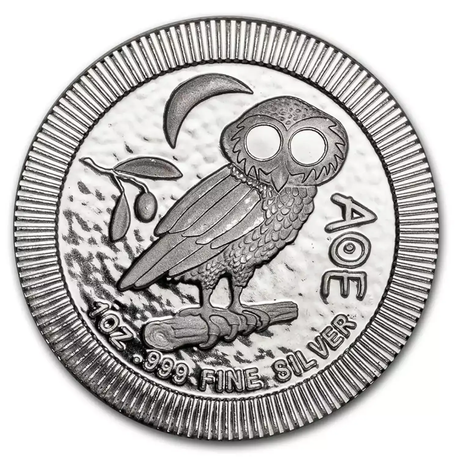 This coin features a stunning Athenian Owl, celebrating the beauty of nature and the historic Athenian Owl Tetradrachm coin. The coin combines the appeal of 1 oz of Silver with a stackable rim so coins can be easily stacked.