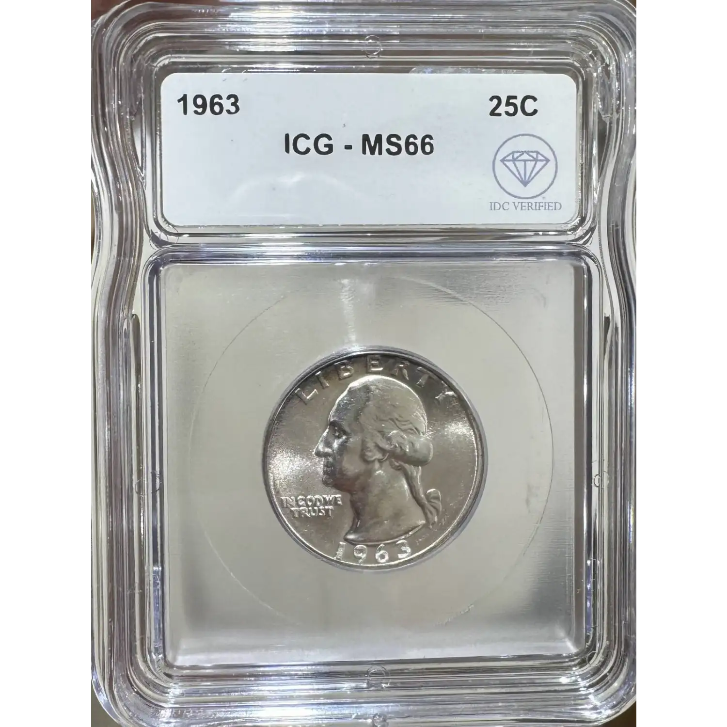 The 1963 25 Cents is part of a series of Washington quarter coins struck from 1932-1964. Struck in Philadelphia and designated as a Business (MS) strike, this coin is made of 90% silver; 10% copper from a mintage of 74,316,000 struck.