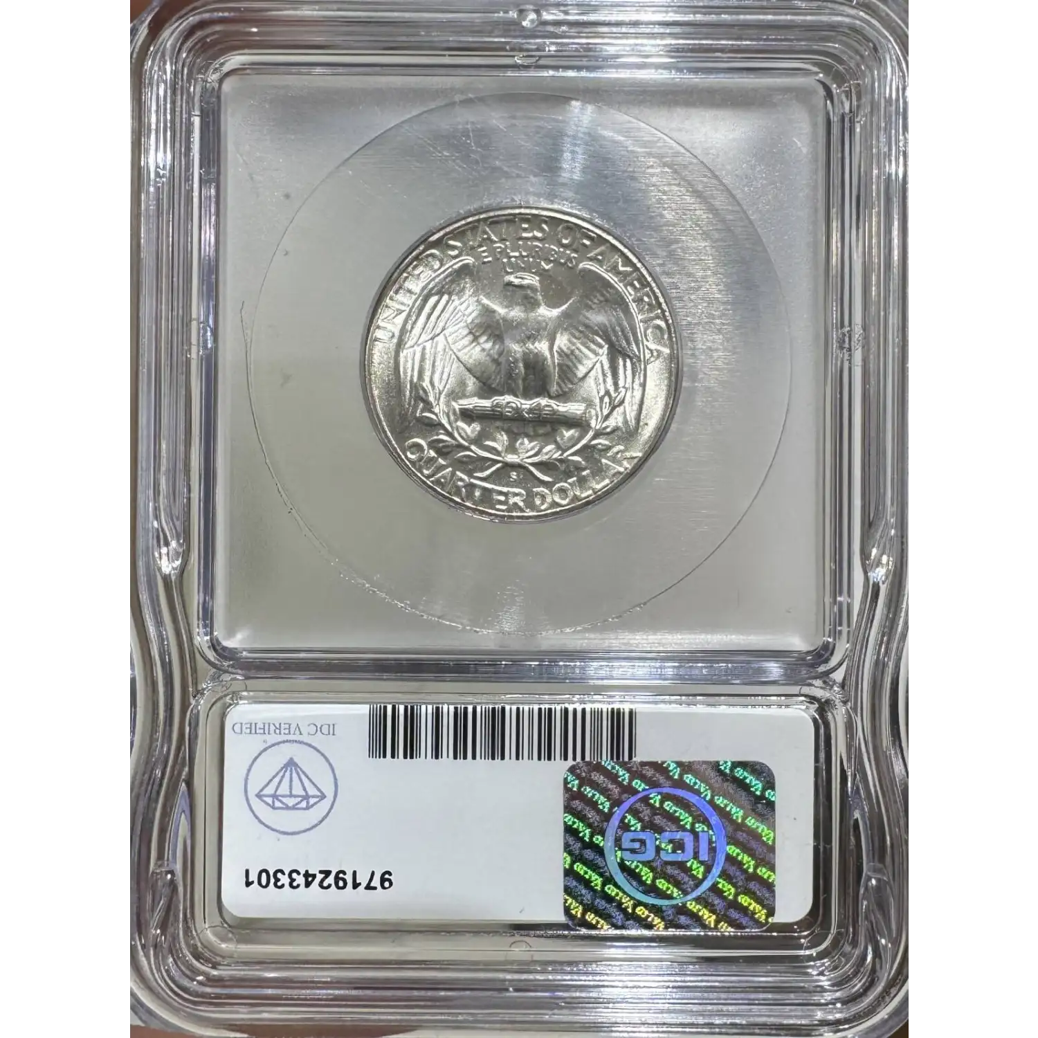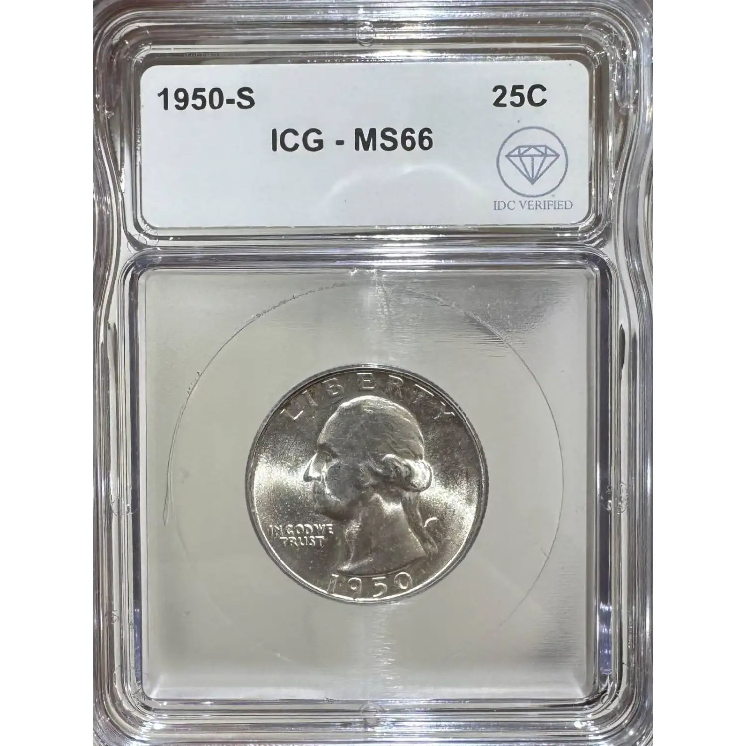 The 1950-S 25 Cents is part of a series of Washington quarter coins struck from 1932-1964. Struck in San Francisco and designated as a Business (MS) strike, this coin is made of 90% silver; 10% copper from a mintage of 10,284,004 struck.