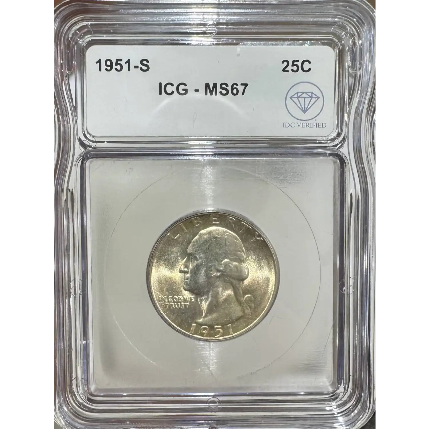 The 1951-S 25 Cents is part of a series of Washington quarter coins struck from 1932-1964. Struck in San Francisco and designated as a Business (MS) strike, this coin is made of 90% silver; 10% copper from a mintage of 9,048,000 struck.