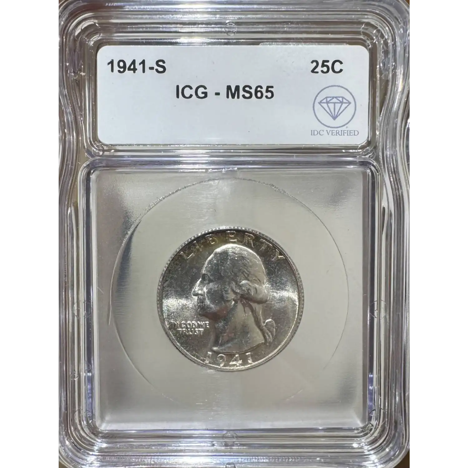 The 1941-S 25 Cents is part of a series of Washington quarter coins struck from 1932-1964. Struck in San Francisco and designated as a Business (MS) strike, this coin is made of 90% silver; 10% copper from a mintage of 16,080,000 struck.