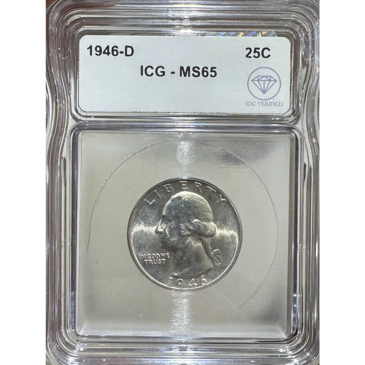 The 1946-D 25 Cents is part of a series of Washington quarter coins struck from 1932-1964. Struck in Denver and designated as a Business (MS) strike, this coin is made of 90% silver; 10% copper from a mintage of 9,072,800 struck.