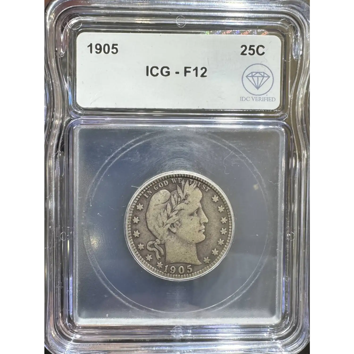 The 1905 25 Cents is part of a series of Liberty head (Barber) quarter coins struck from 1892-1916. Struck in Philadelphia and designated as a Business (MS) strike, this coin is made of 90% silver; 10% copper from a mintage of 4,967,523 struck.