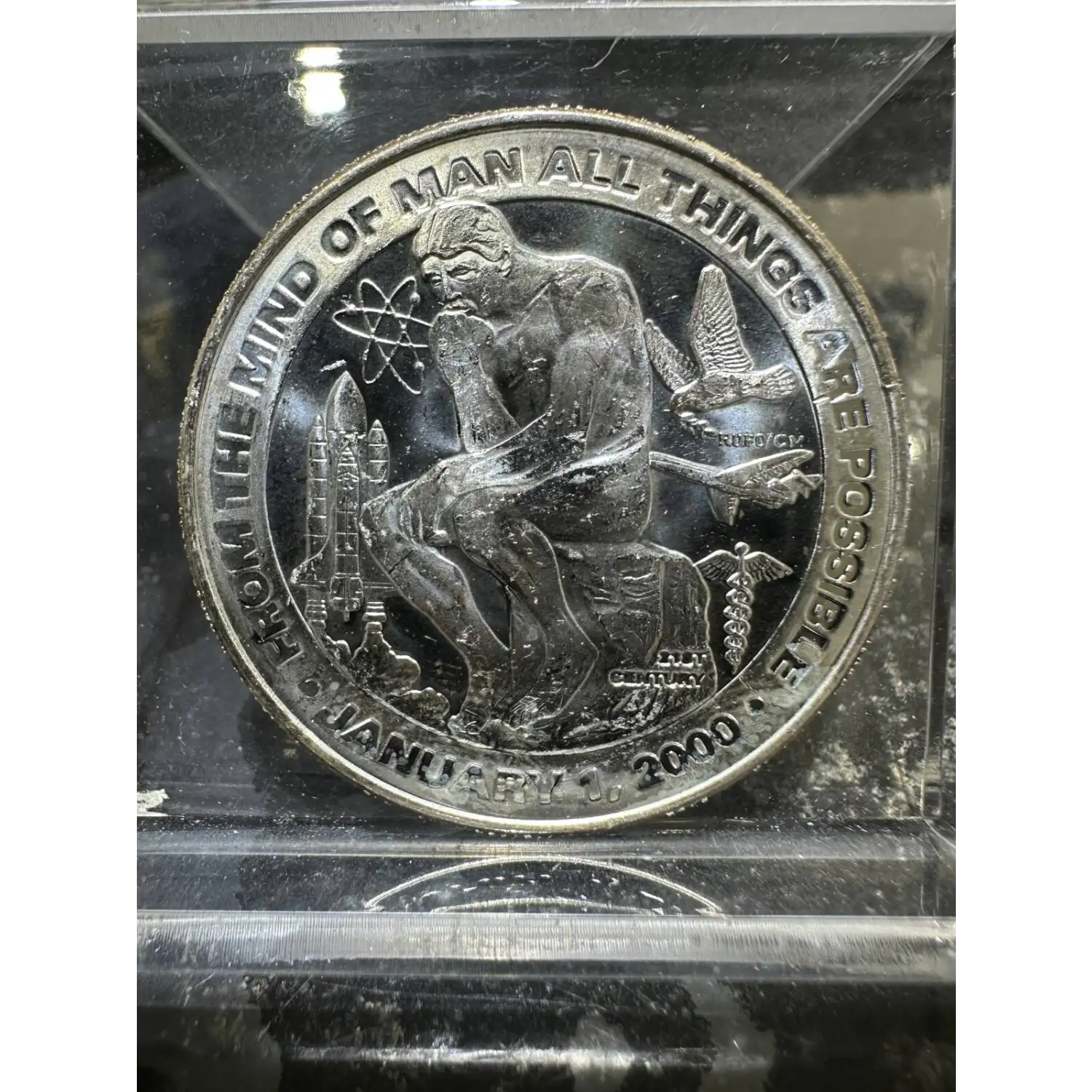 Obverse features a man thinking and the reverse features the morgan dollar eagle design. Dated January 1, 2000