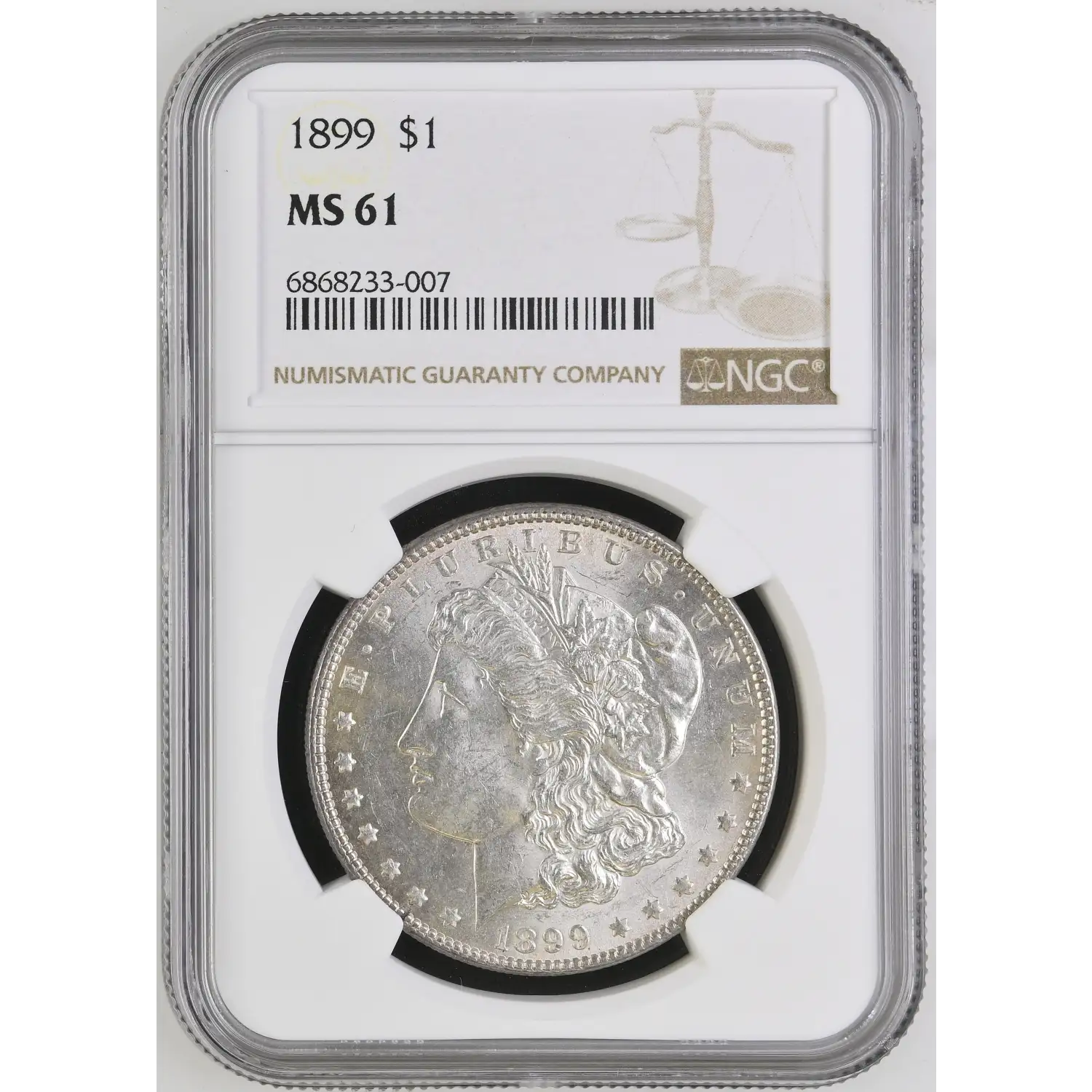 Like many better dates in the Morgan series, the 1899 Philadelphia-minted Morgan dollar is just tough enough to find that it commands decent premiums even in circulated grades. With its mintage of under 350,000, the 1899 Morgan dollar attracts much numismatic attention, especially from mass marketers who tout this coin's lower mintage in advertising. Uncirculated specimens are widely available through MS65 but strong demand keeps prices higher strong there, too. In MS66, this coin is quite scarce and it is rare in MS67 or higher. PLs are scarce with DMPLs proving scarcer still, but both can be found with some regularity in the marketplace.