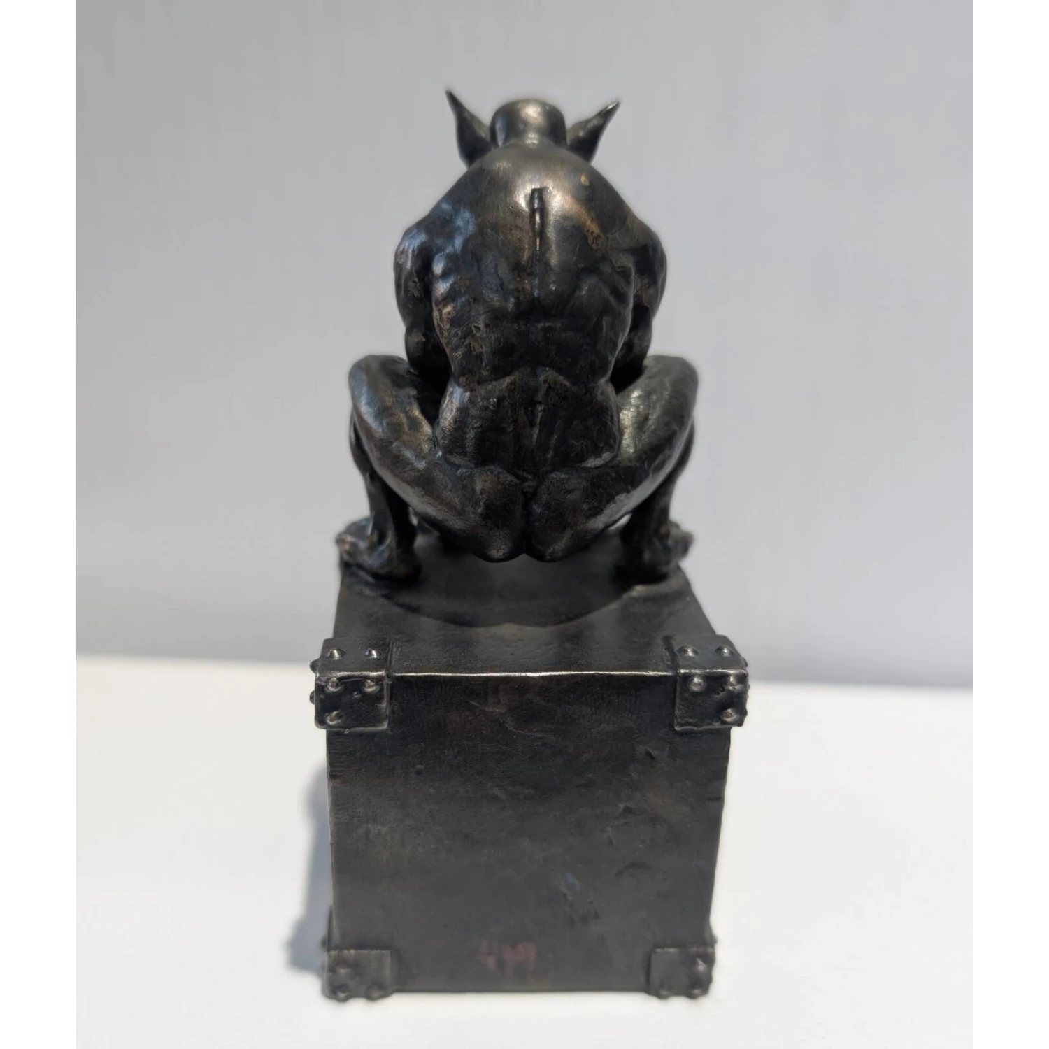 These 13 oz Antique Finish Godric the Gargoyle Silver Statues feature original artwork created by award-winning character artists, and master sculptor, Rafael Fernandez. There are incredible details used in this statue that include an oversized old-fashioned safe that includes texture to the handles, hinges, and rivets.