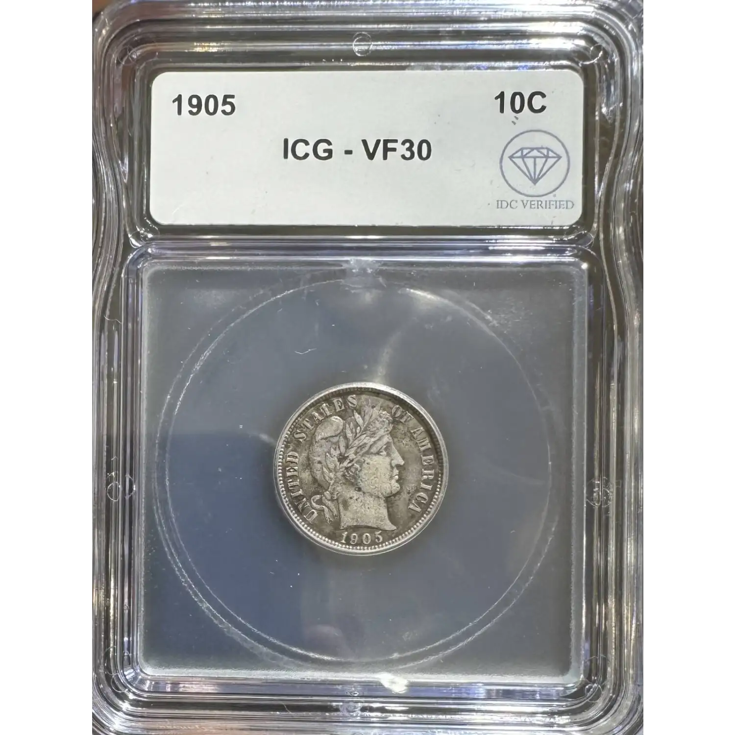 The 1905 10 Cents is part of a series of Liberty head (Barber) dime coins struck from 1892-1916. Struck in Philadelphia and designated as a Business (MS) strike, this coin is made of 90% silver; 10% copper from a mintage of 14,551,623 struck.
