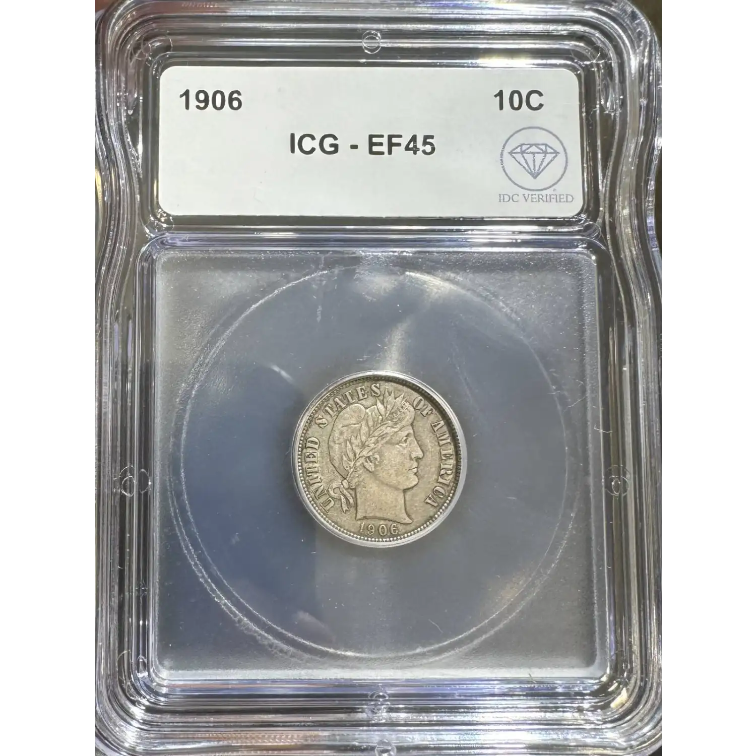 The 1906 10 Cents is part of a series of Liberty head (Barber) dime coins struck from 1892-1916. Struck in Philadelphia and designated as a Business (MS) strike, this coin is made of 90% silver; 10% copper from a mintage of 19,957,731 struck.