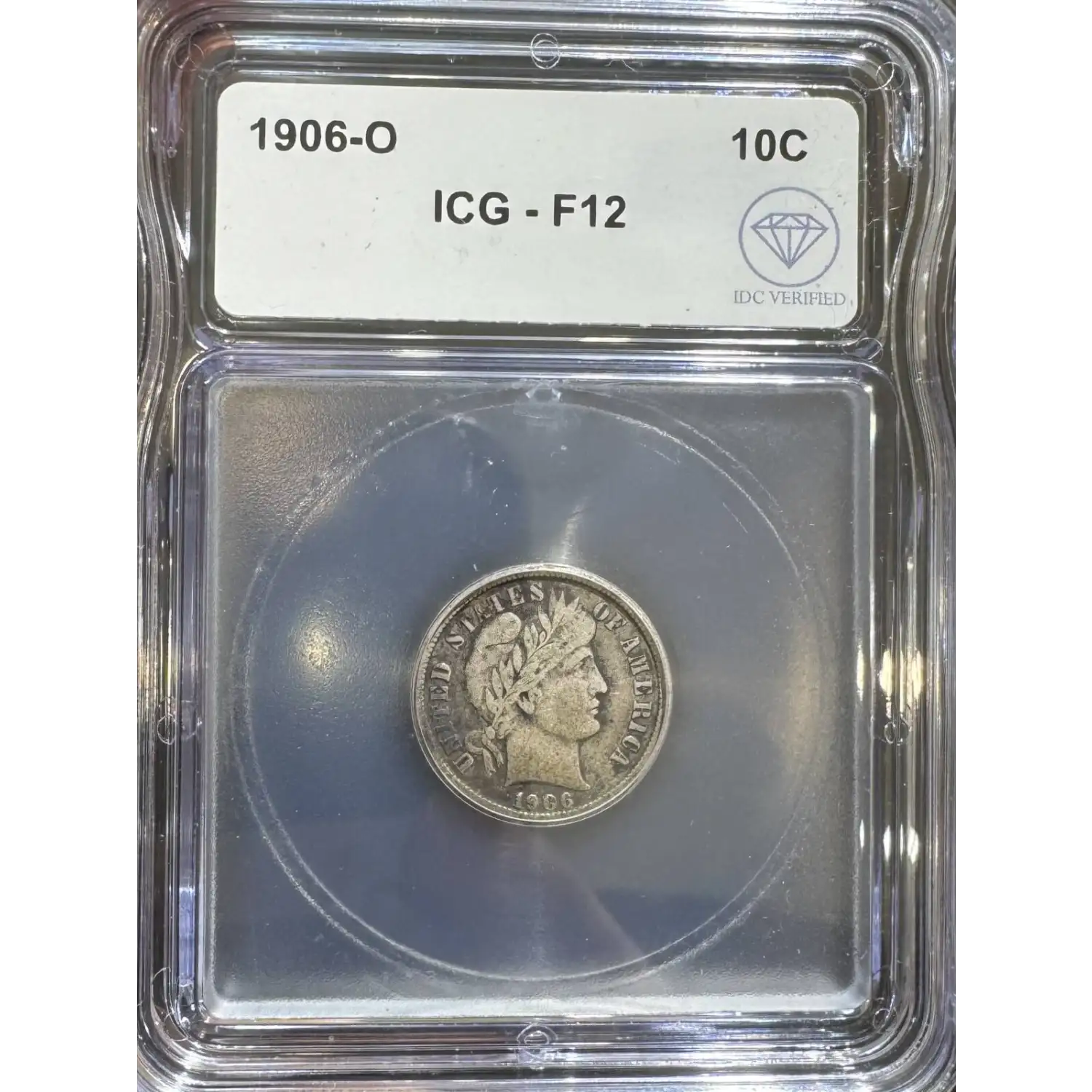 The 1906-O 10 Cents is part of a series of Liberty head (Barber) dime coins struck from 1892-1916. Struck in New Orleans and designated as a Business (MS) strike, this coin is made of 90% silver; 10% copper from a mintage of 2,610,000 struck.