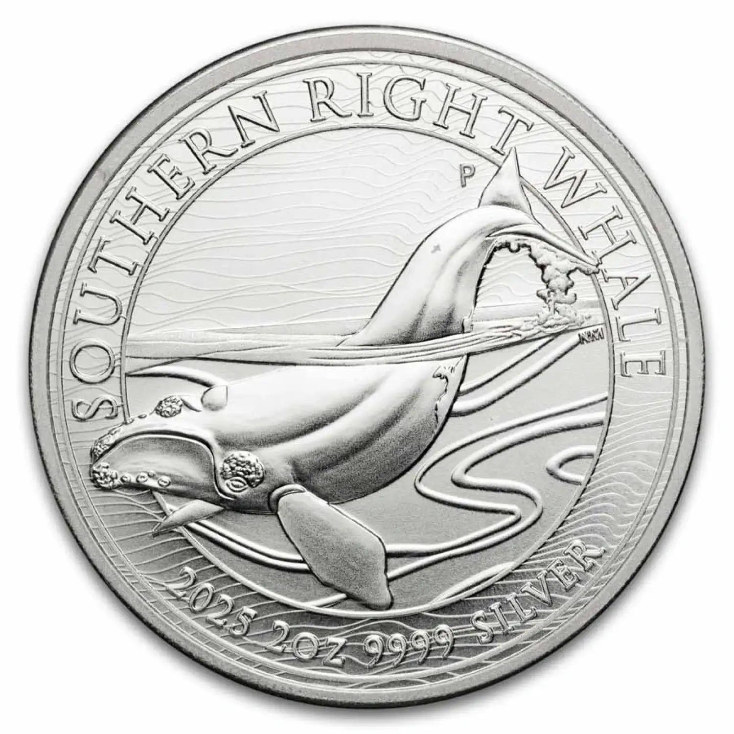This 2 oz Silver 2025 $2 Australia coin celebrates the Southern Right Whale. Coins are struck to a .9999 fineness.