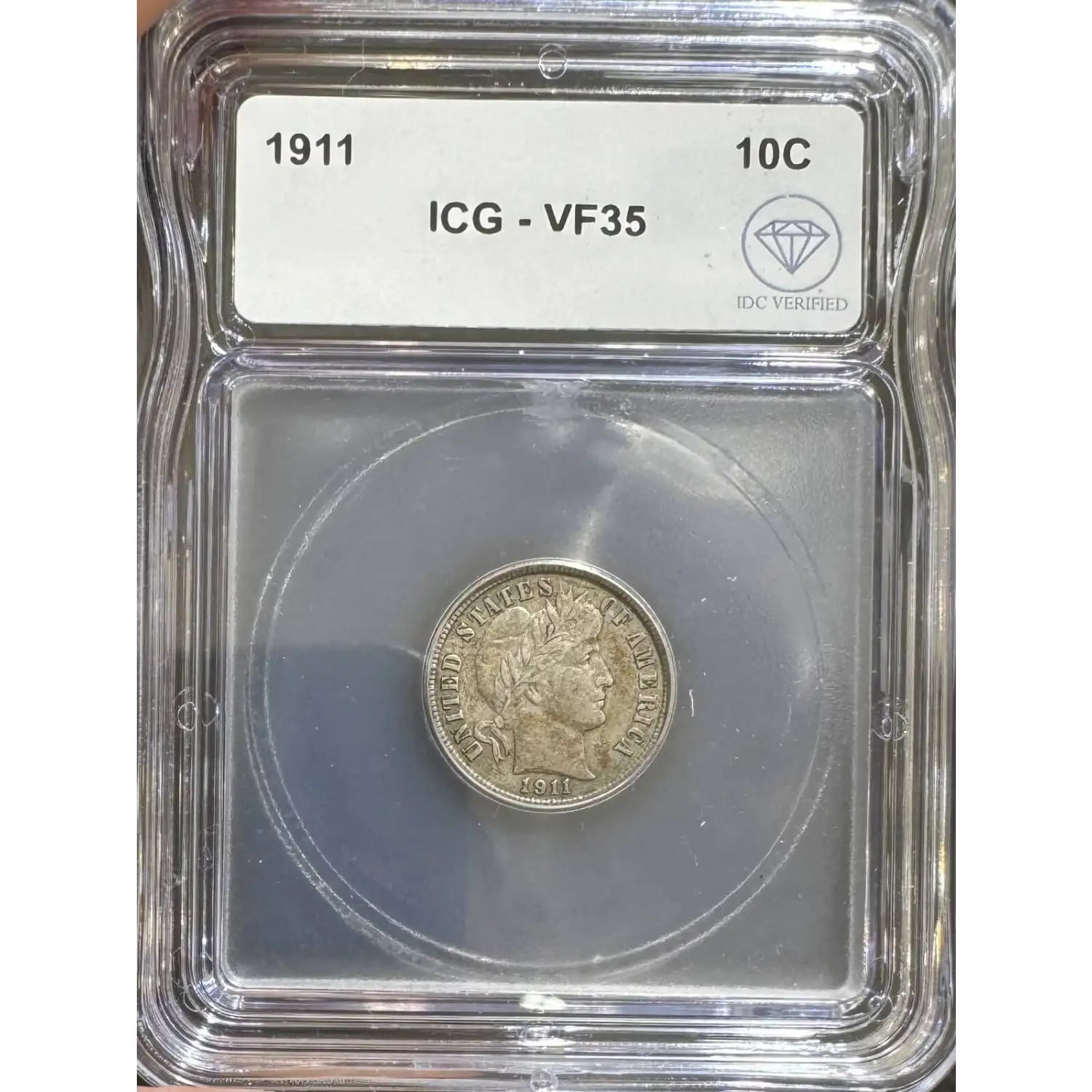 The 1911 10 Cents is part of a series of Liberty head (Barber) dime coins struck from 1892-1916. Struck in Philadelphia and designated as a Business (MS) strike, this coin is made of 90% silver; 10% copper from a mintage of 18,870,000 struck.
