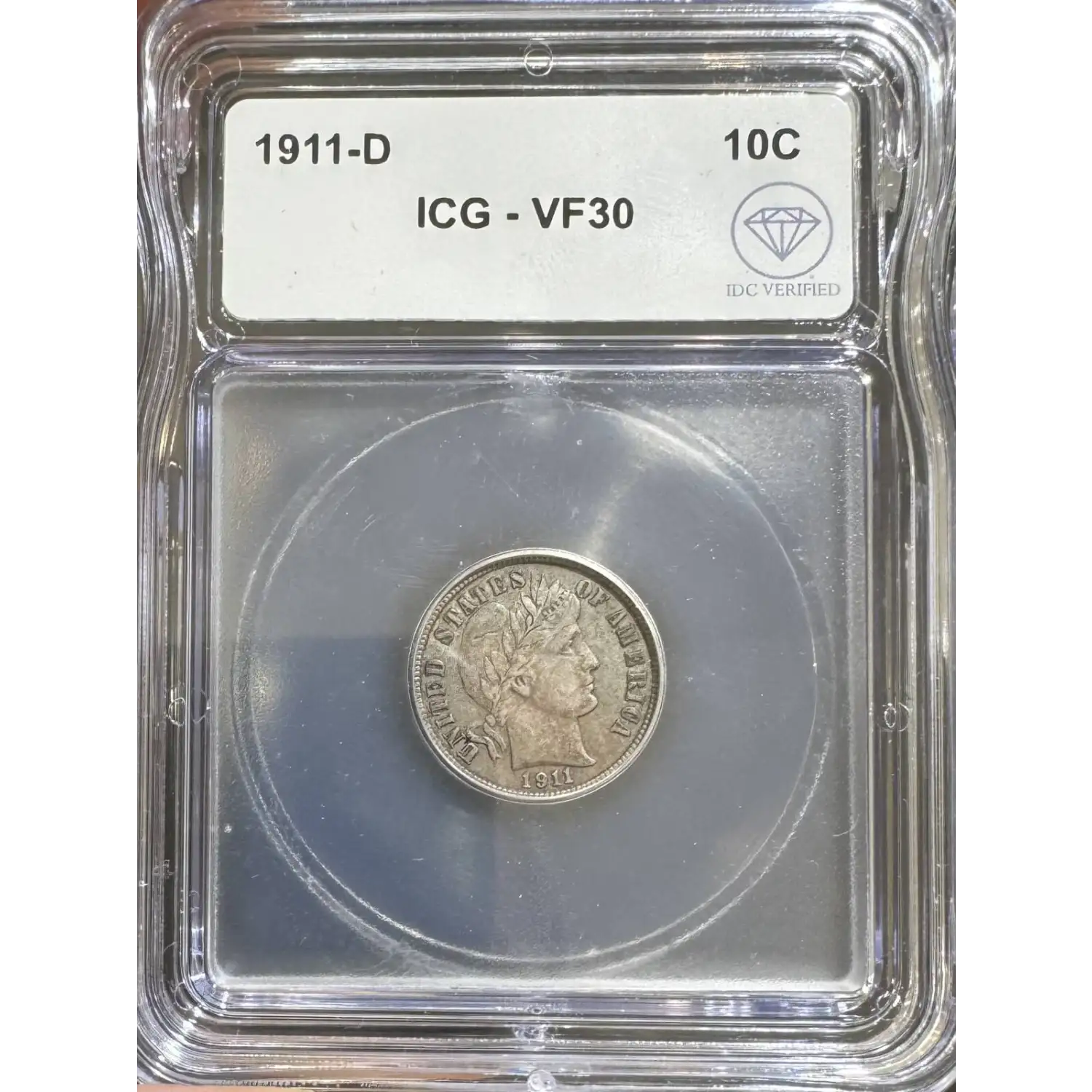 The 1911-D 10 Cents is part of a series of Liberty head (Barber) dime coins struck from 1892-1916. Struck in Denver and designated as a Business (MS) strike, this coin is made of 90% silver; 10% copper from a mintage of 11,209,000 struck.