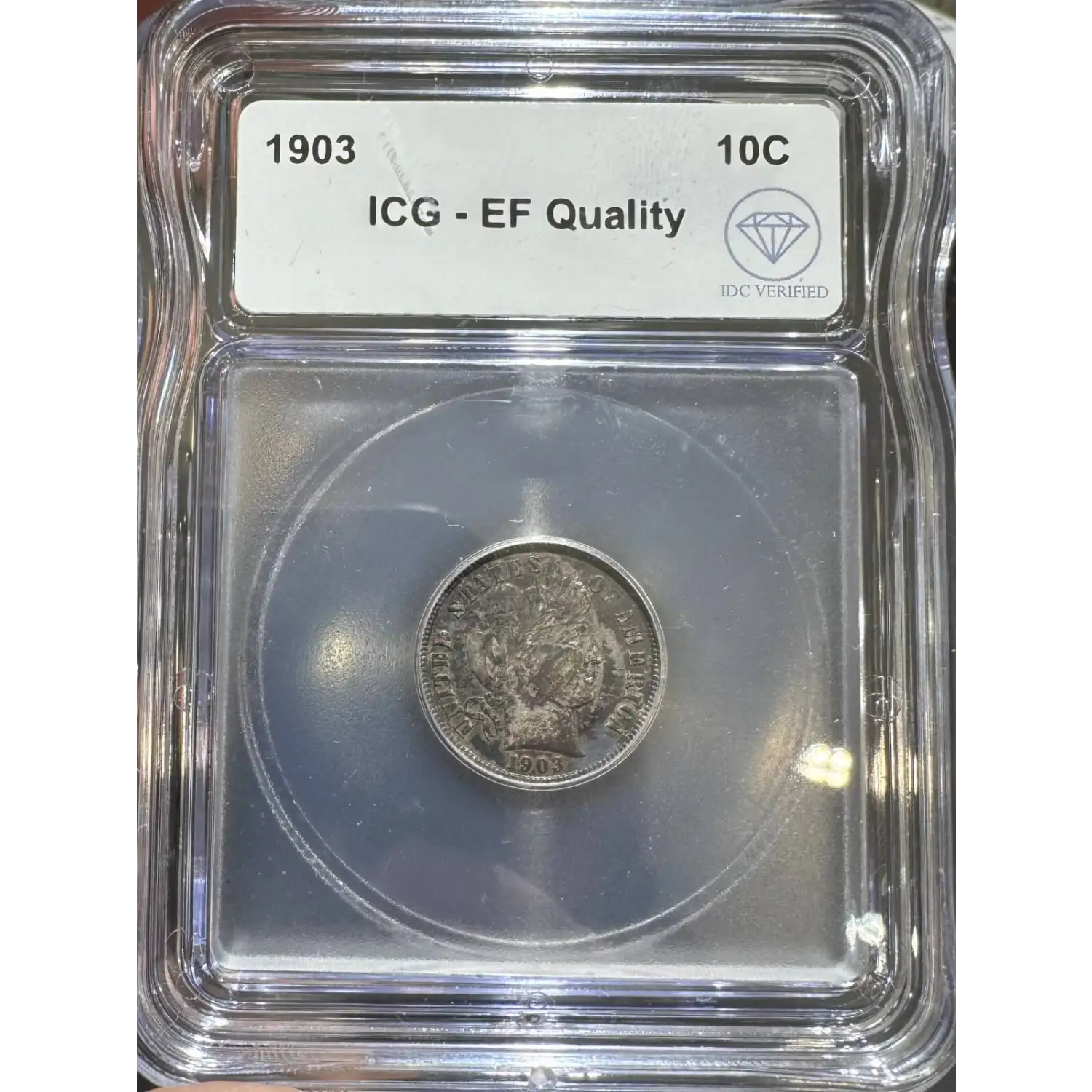 The 1903 10 Cents is part of a series of Liberty head (Barber) dime coins struck from 1892-1916. Struck in Philadelphia and designated as a Business (MS) strike, this coin is made of 90% silver; 10% copper from a mintage of 19,500,000 struck.