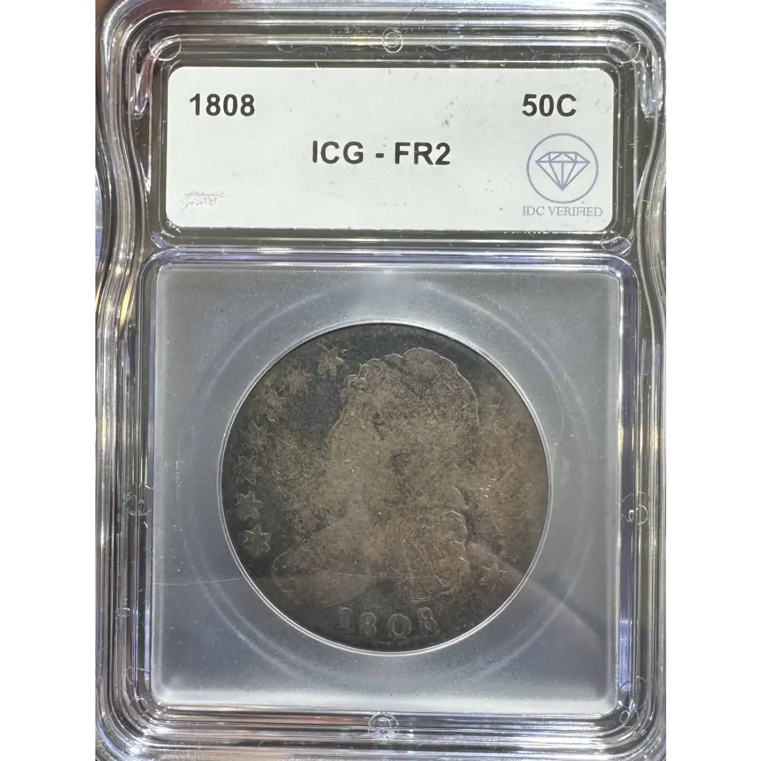 The 1808 50 Cents is part of a series of Capped bust half dollar coins struck from 1807-1836. Struck in Philadelphia and designated as a Business (MS) strike, this coin is made of 89% silver; 11% copper from a mintage of 1,368,600 struck.