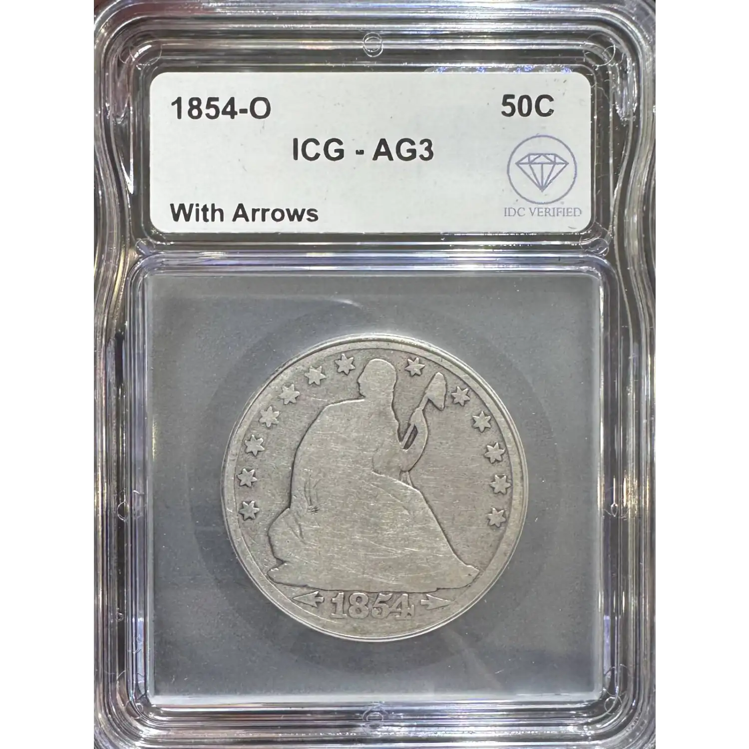 The 1854-O 50 Cents is part of a series of Liberty Seated half dollar coins struck from 1854-1855. The specific variety is Arrows. Struck in New Orleans and designated as a Business (MS) strike, this coin is made of 90% silver; 10% copper from a mintage of 5,240,000 struck.