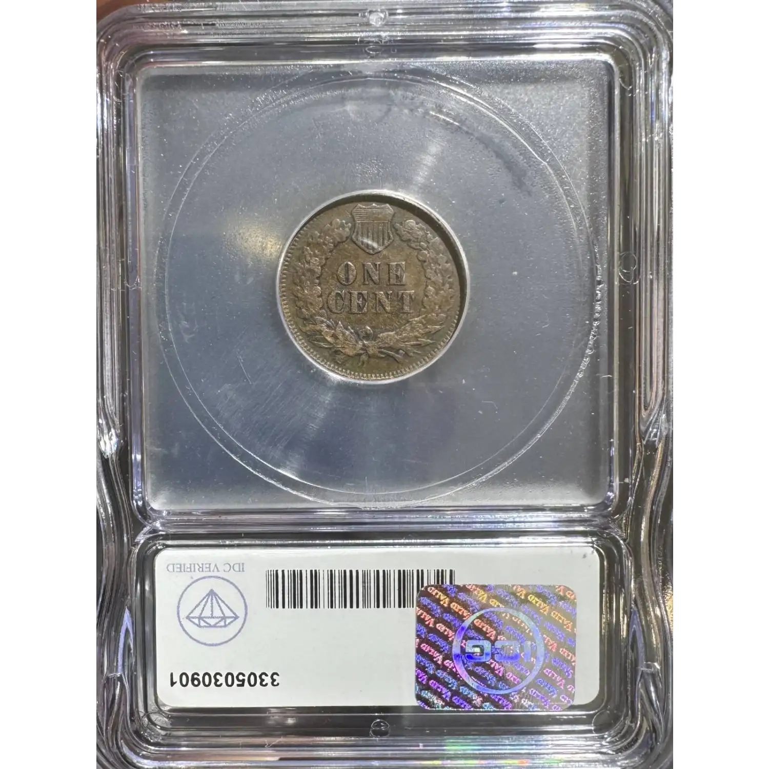 Reverse: The reverse bears the denomination of ONE CENT in the center surrounded by a wreath bearing a ribbon with arrows tied in at the bottom center.