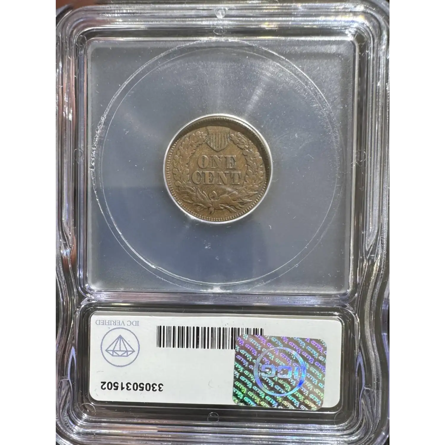 Reverse: The reverse bears the denomination of ONE CENT in the center surrounded by a wreath bearing a ribbon with arrows tied in at the bottom center.