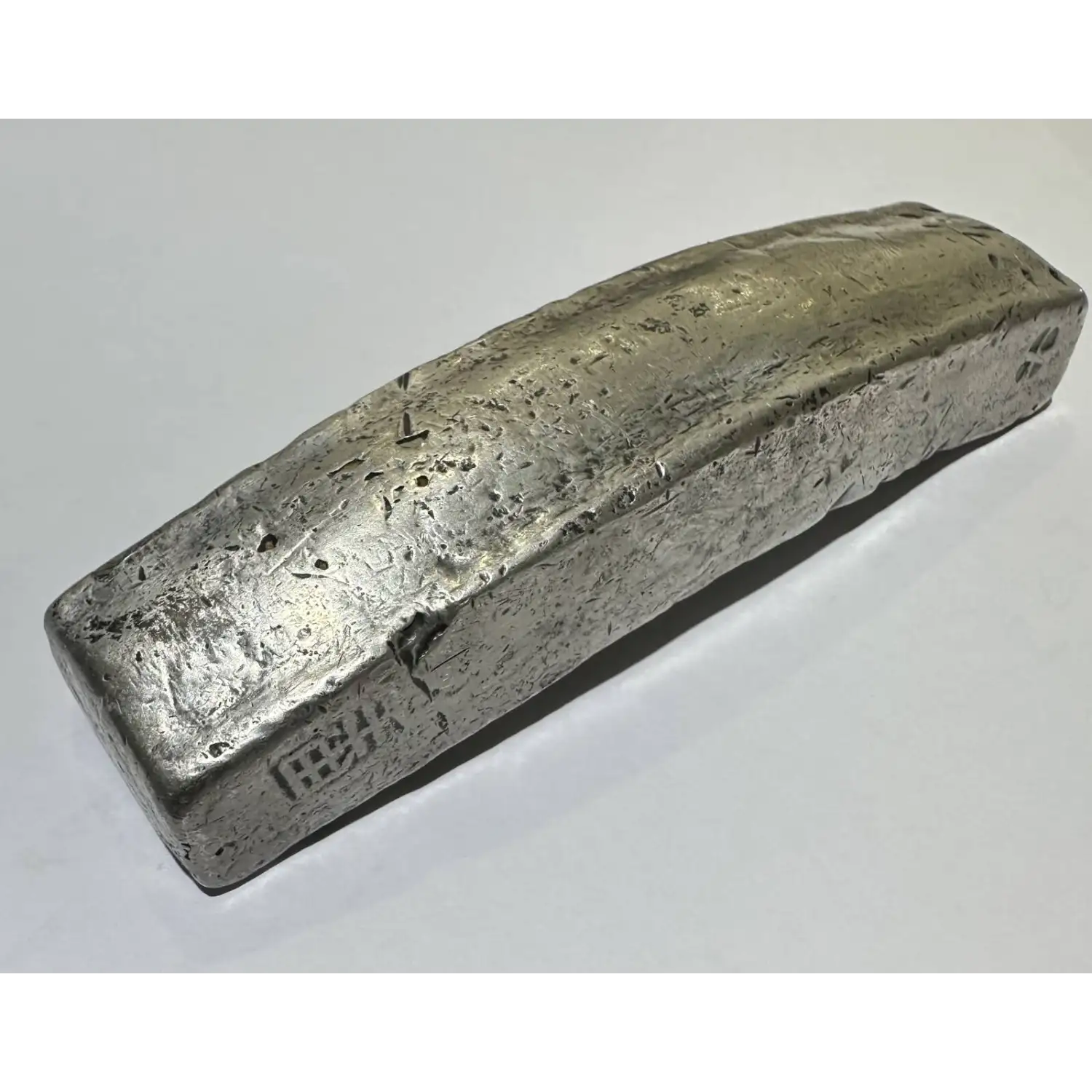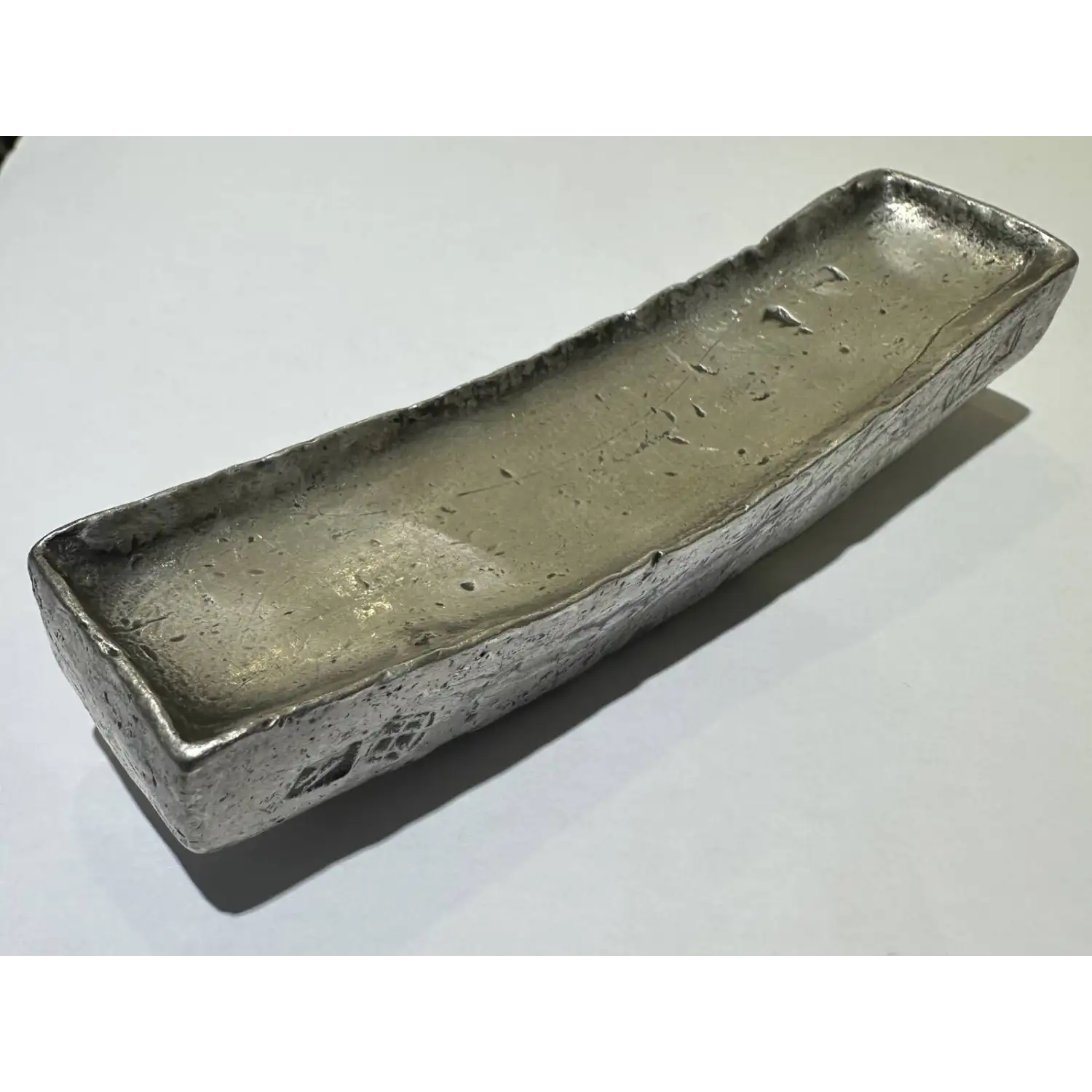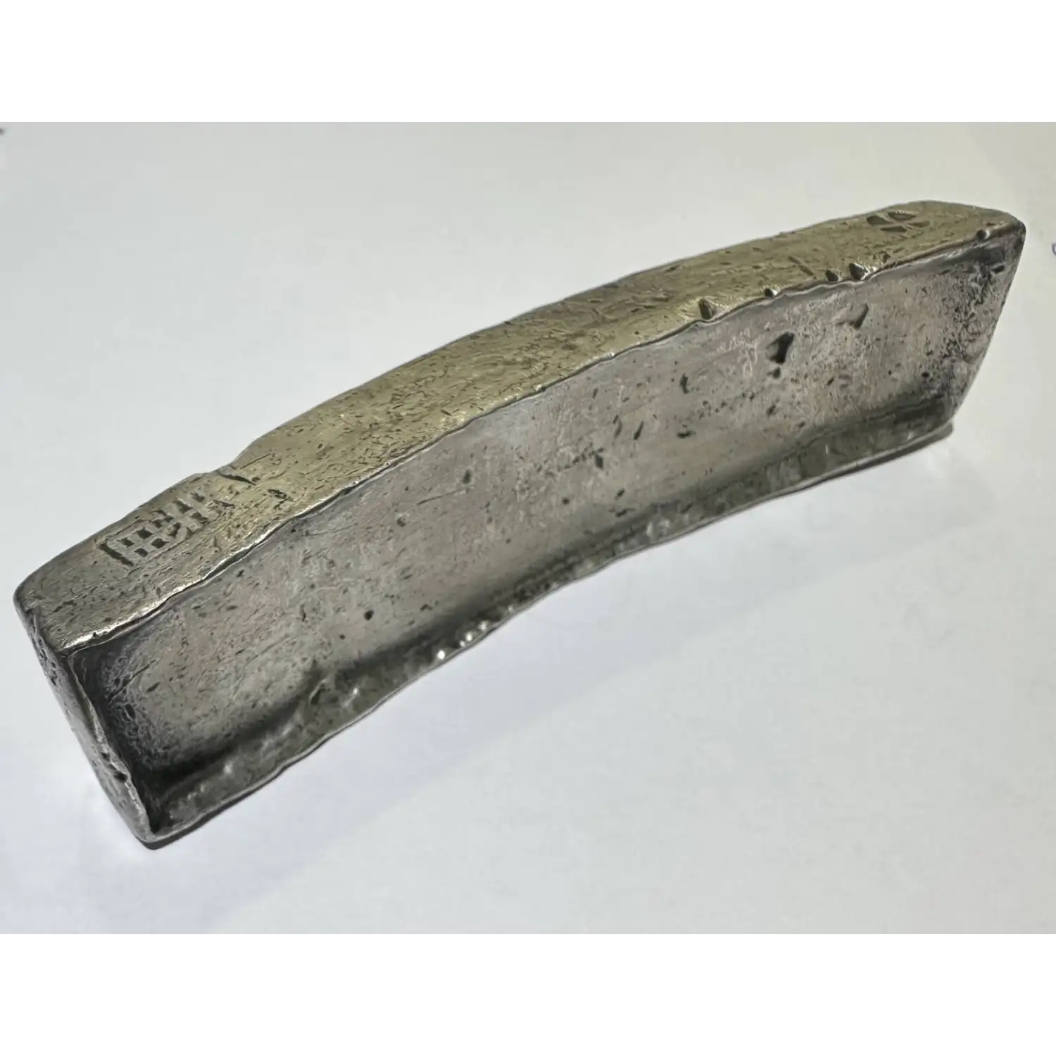 Cast mainly from melted Spanish-American 8 Reales, Indian Rupees, and French Indochina Piastres, they assay consistently .991 fine. A typical weight is generally in the 350-380 grams range, with a likely standard of 380 gm. The size is typically 110mm x 31mm x 14mm, except the early class which is longer and thinner.