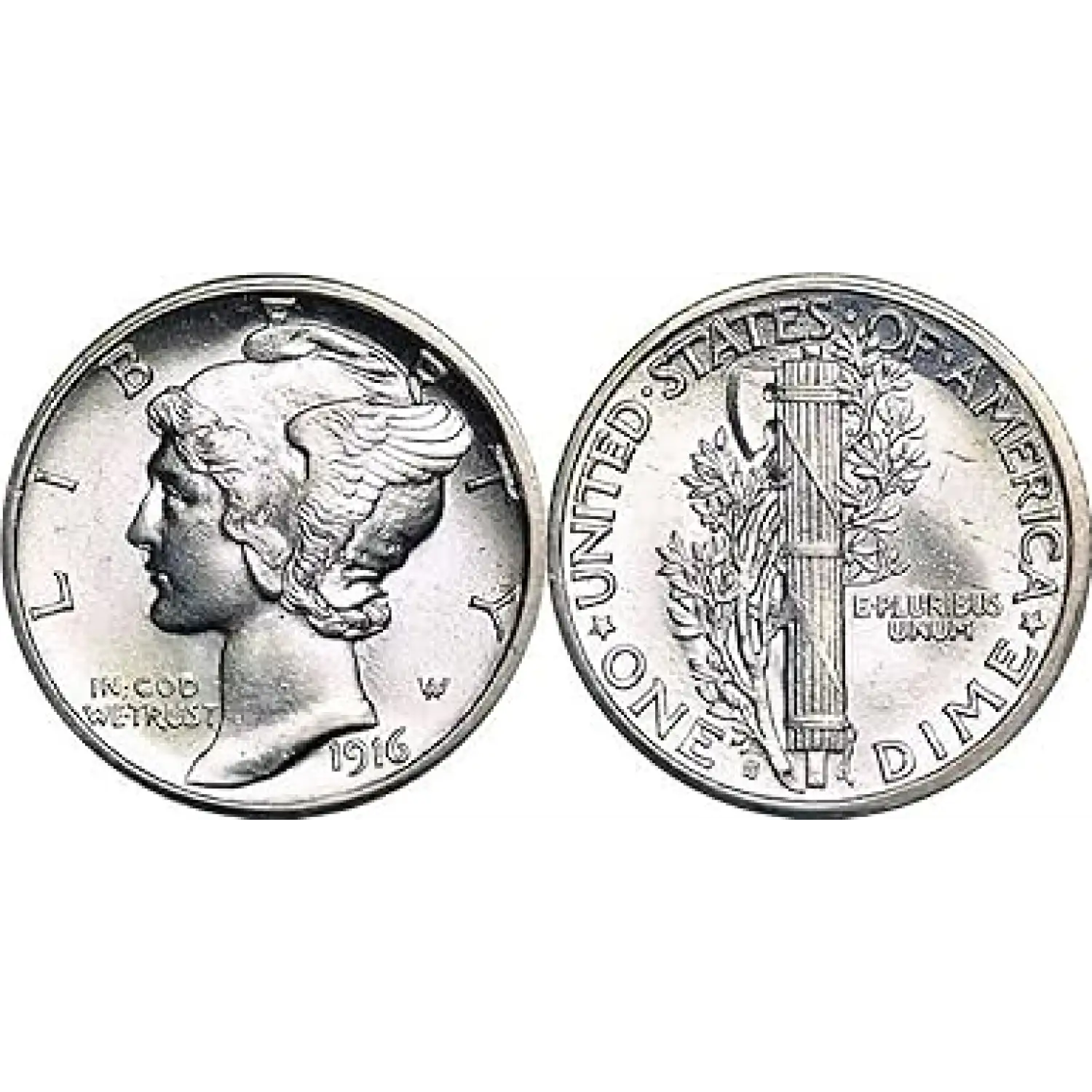 On the obverse of all coins is the image of a young Liberty with a winged cap on her head. The design from Weinman so closely mirrored that of the Roman messenger god Mercury, that Americans took to calling the coin the Mercury Dime, even though the design was technically known as the Winged Liberty depiction.
