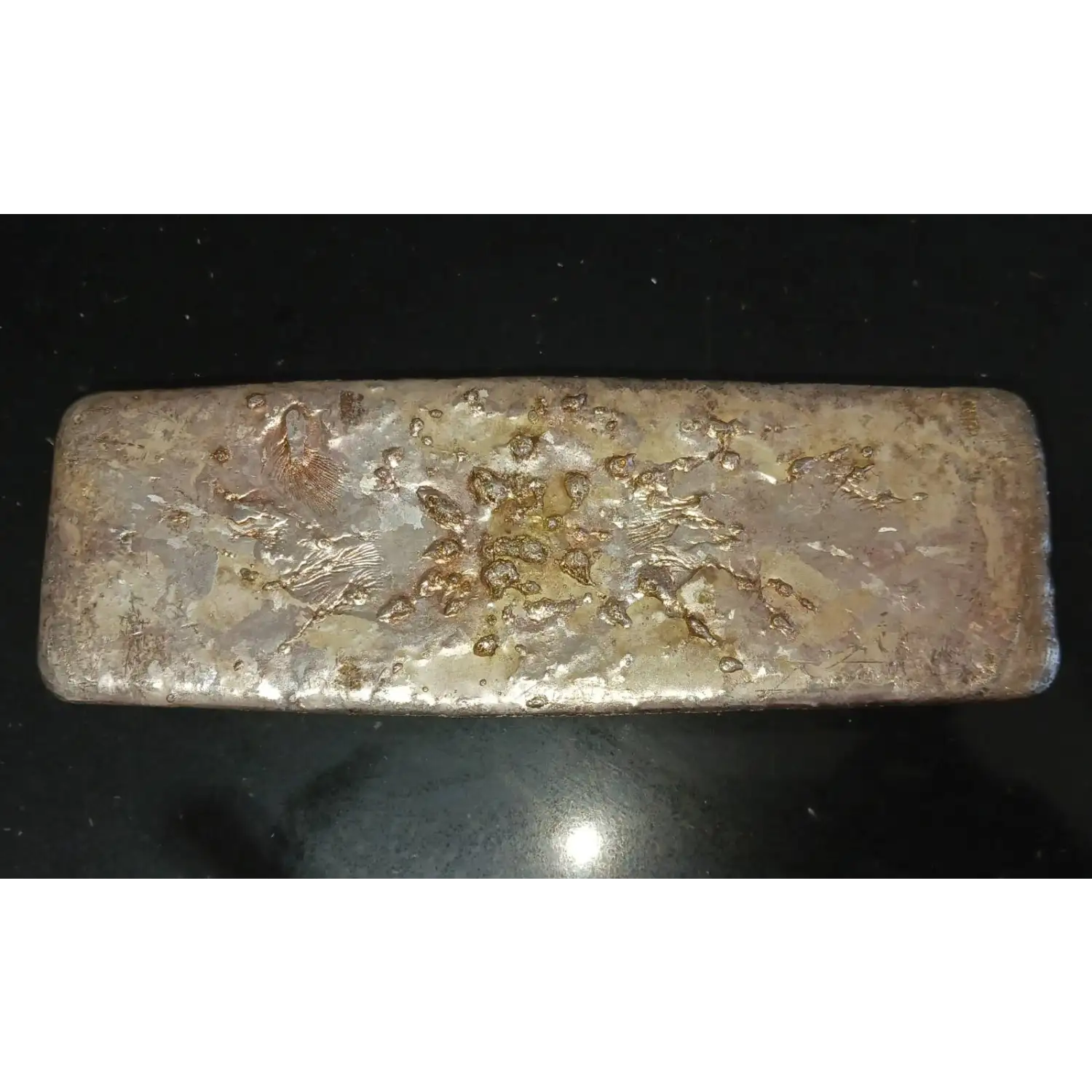 Amex 101.4 oz Poured Silver Bars appeal to investors and collectors for many years. The Amex 101.4 oz Poured Silver Bar is composed of 101.4 troy ounces of .999 fine silver. This Classic and rustic silver bar features a handstamped, weight, and purity.