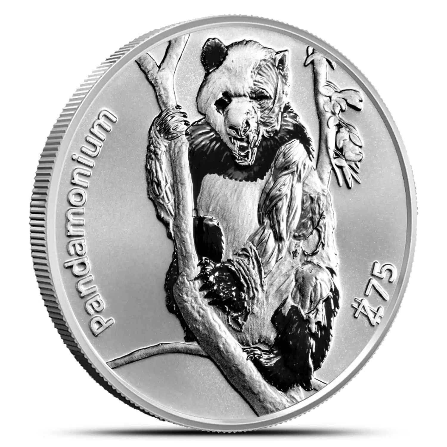 Obverse: Features an undead panda with various parts of its body decaying, along with the face value and "PANDAMONIUM" inscriptions