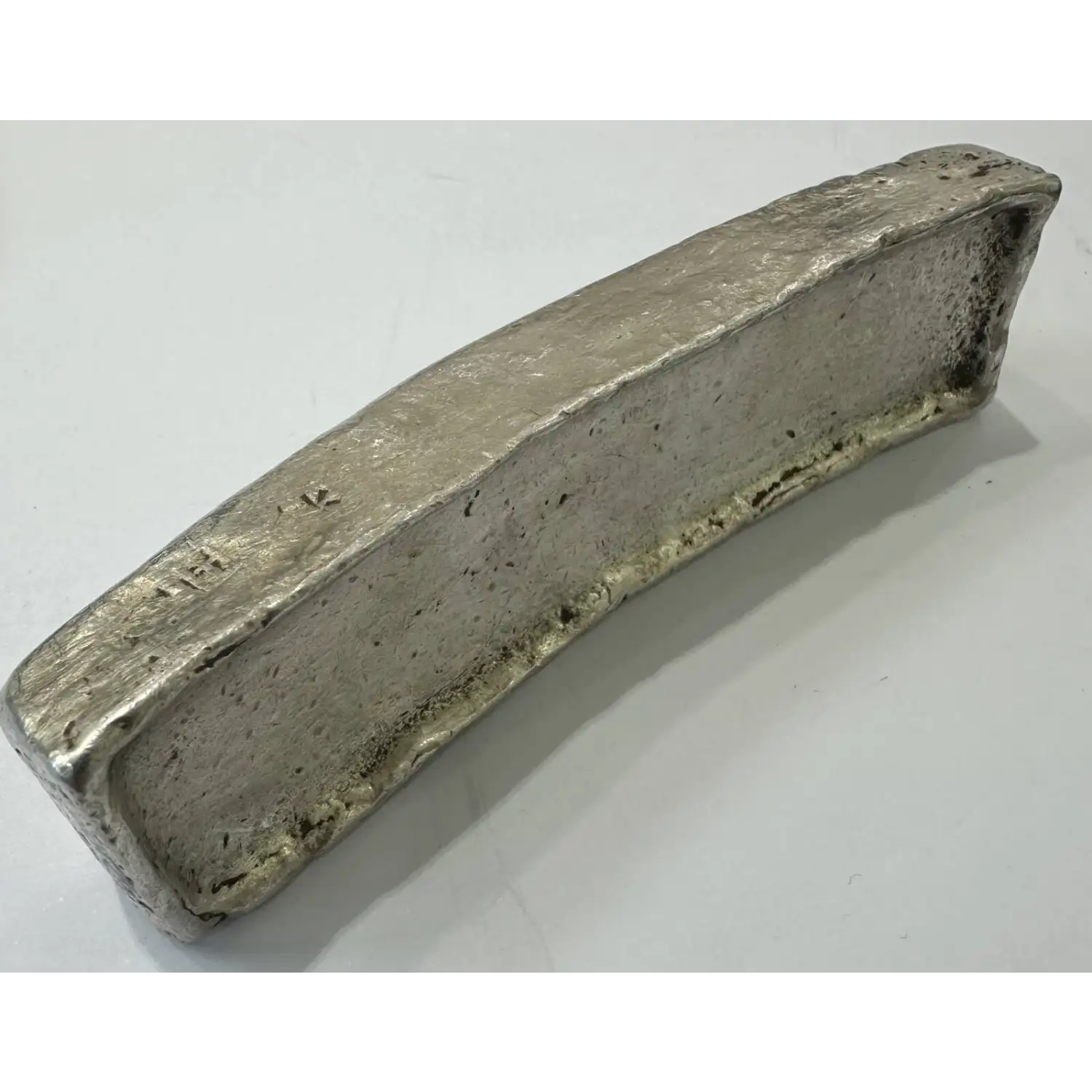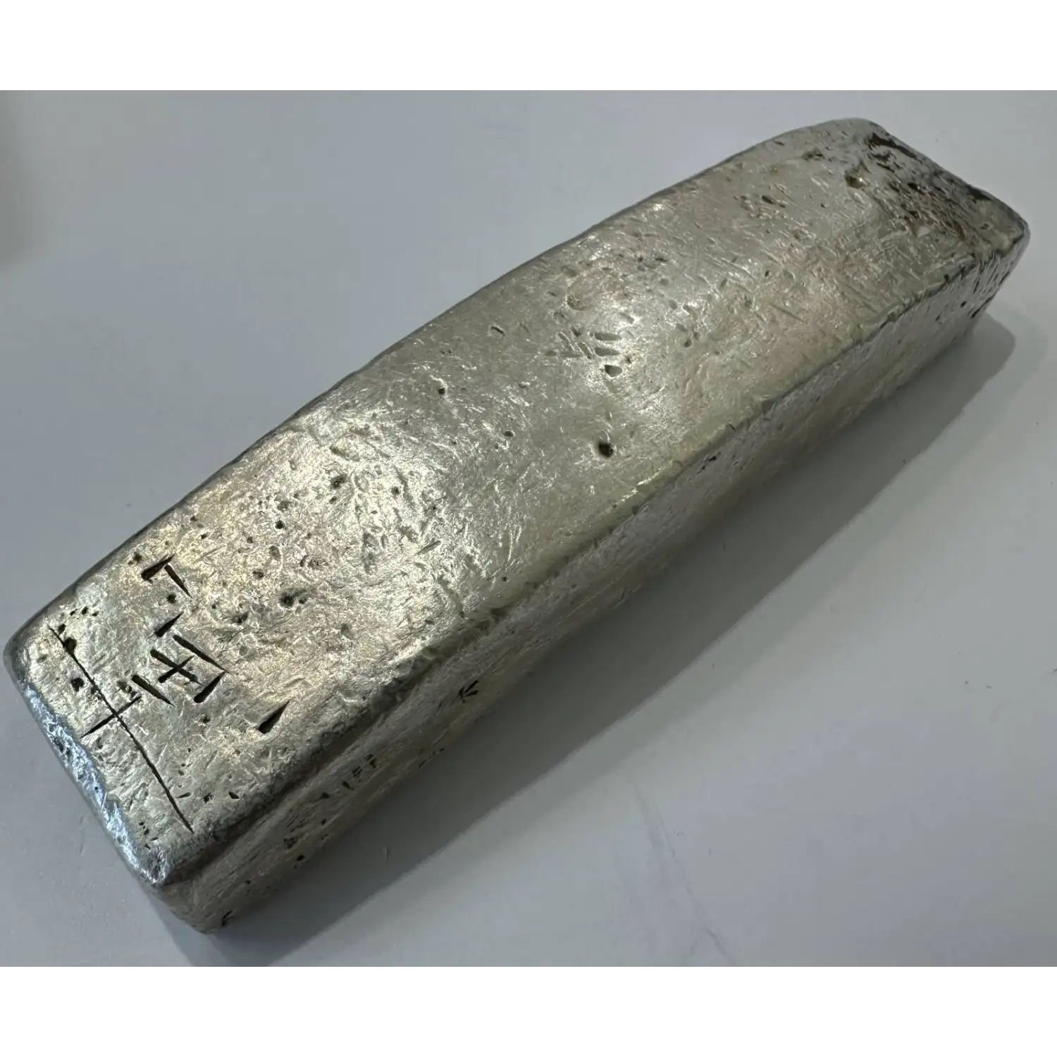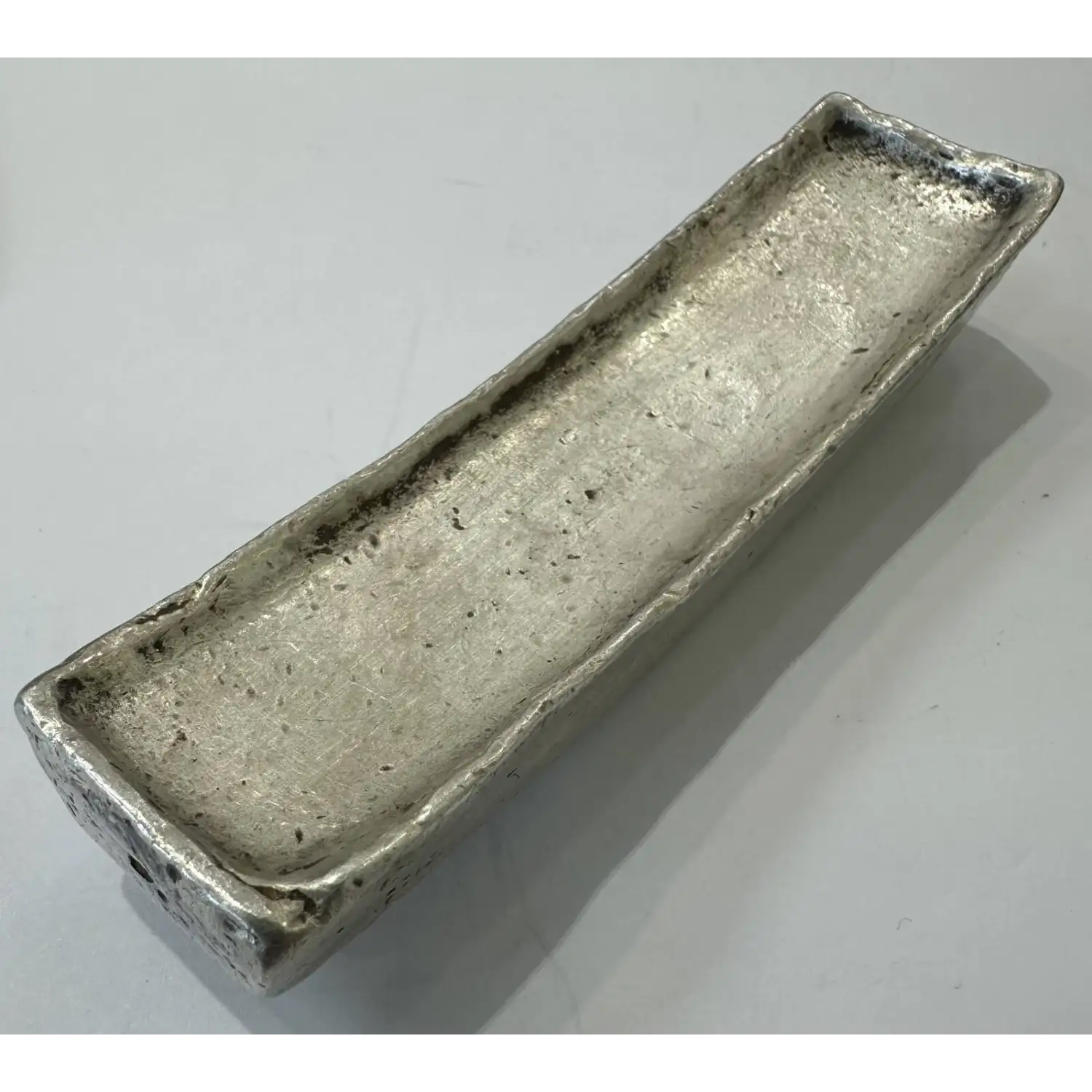 Cast mainly from melted Spanish-American 8 Reales, Indian Rupees, and French Indochina Piastres, they assay consistently .991 fine. A typical weight is generally in the 350-380 grams range, with a likely standard of 380 gm. The size is typically 110mm x 31mm x 14mm, except the early class which is longer and thinner.