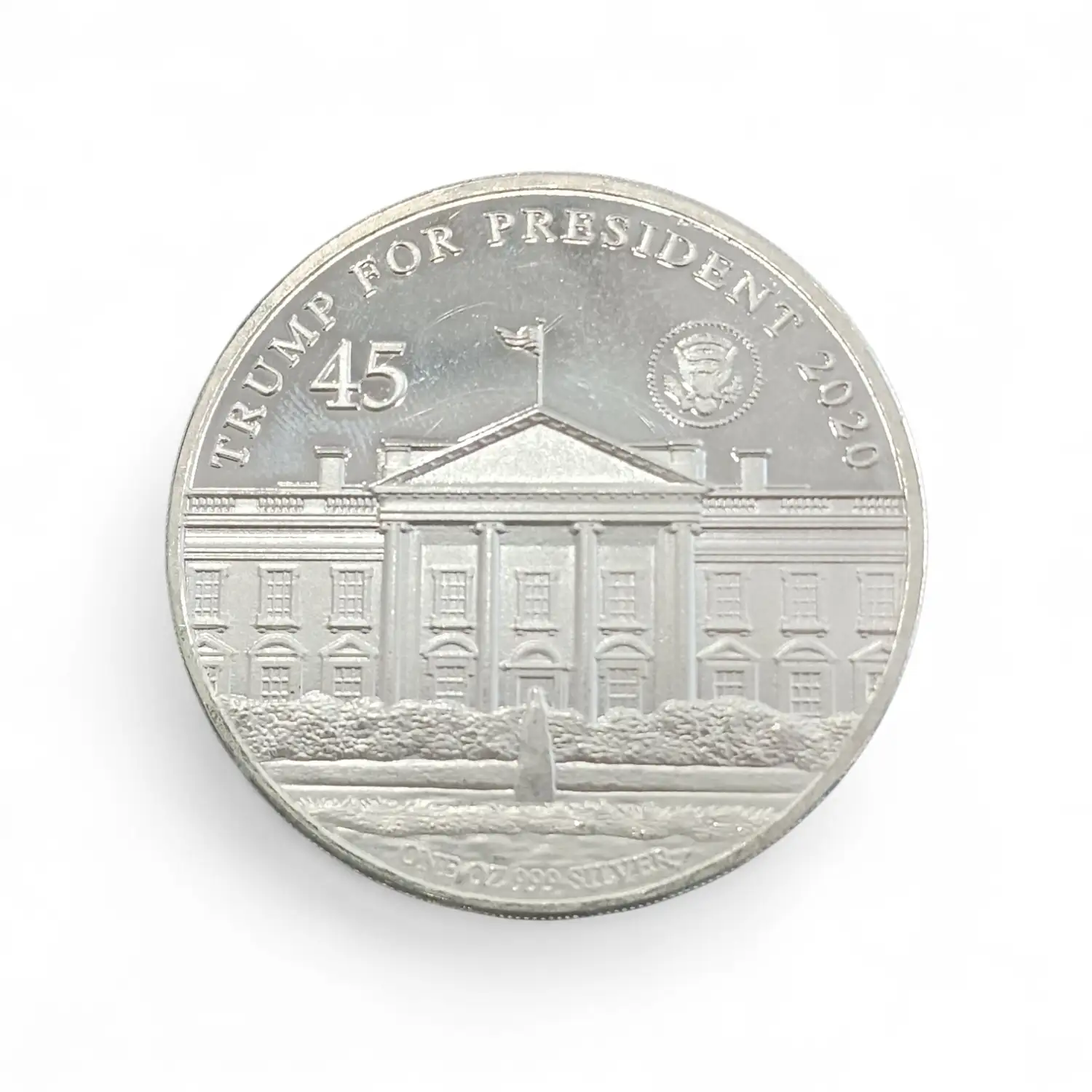Lettering: TRUMP FOR PRESIDENT 2020 • 45 • ONE OUNCE 999 SILVER