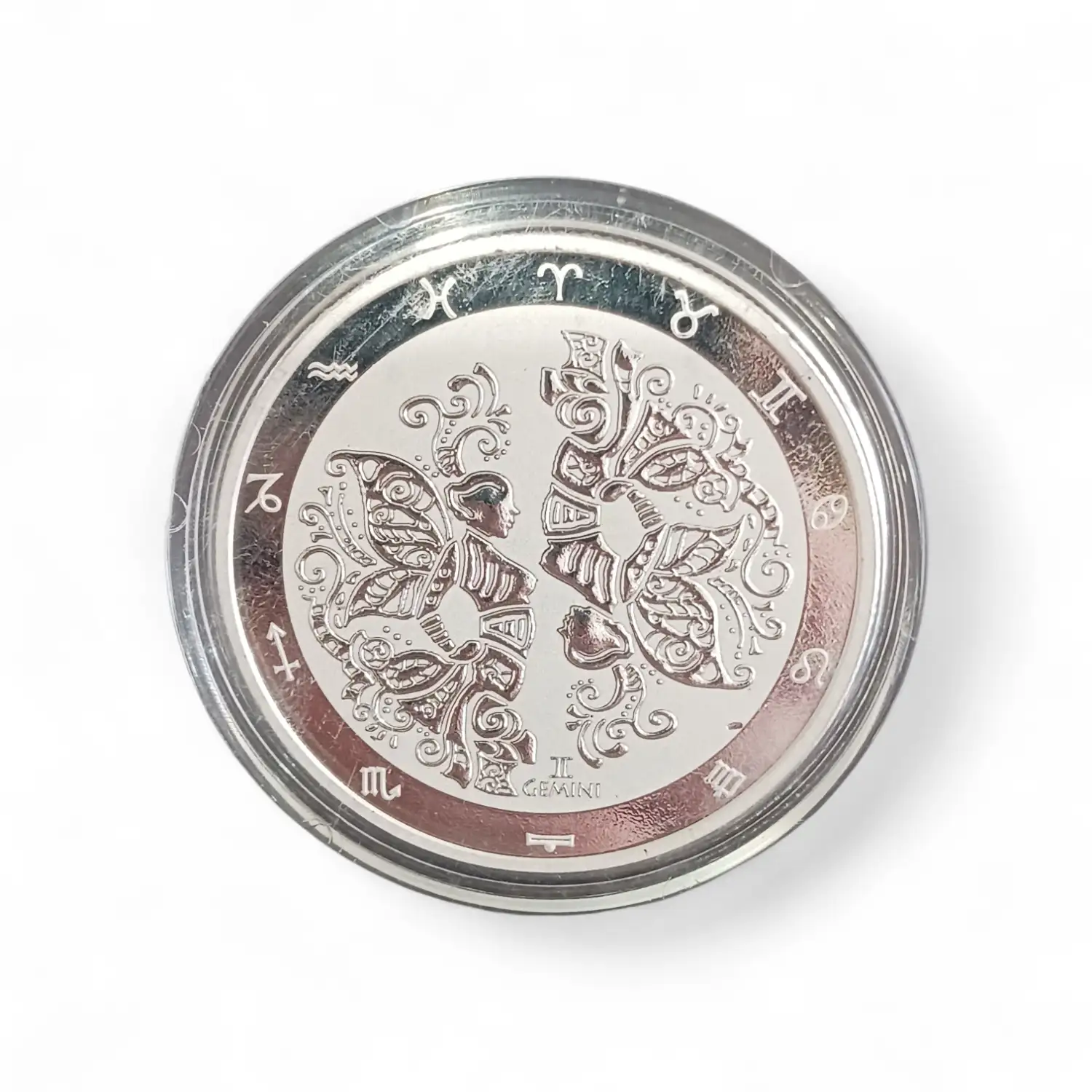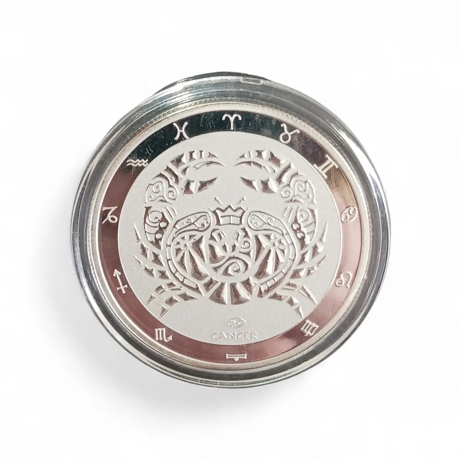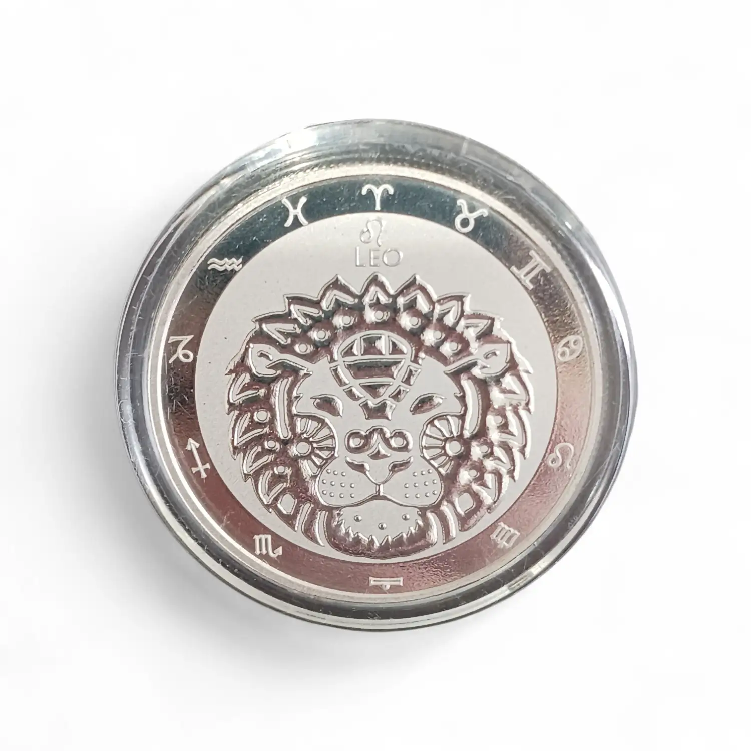 Each beautifully struck silver round represents one of the twelve astrological signs, featuring intricate high-relief designs that bring each symbol to life.
