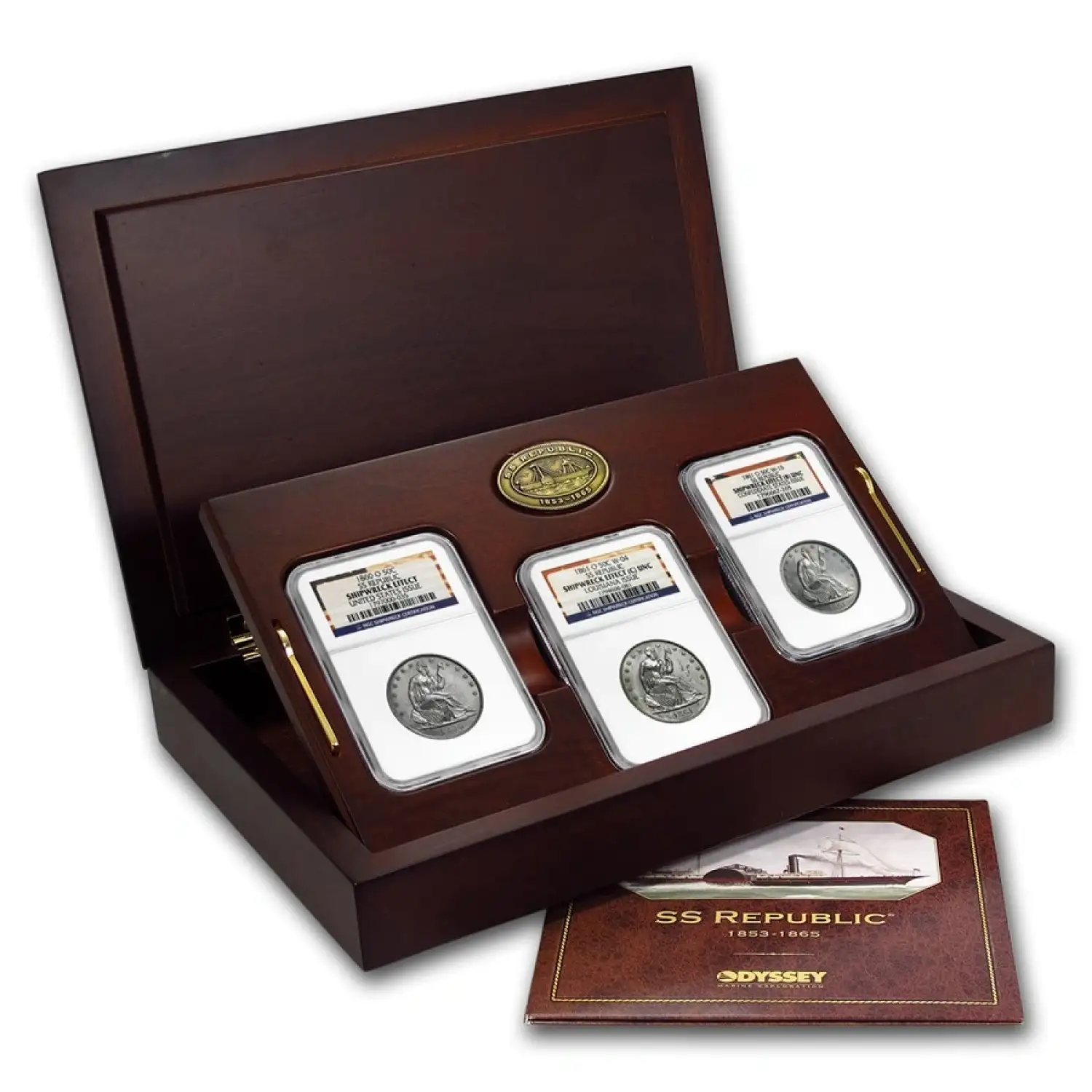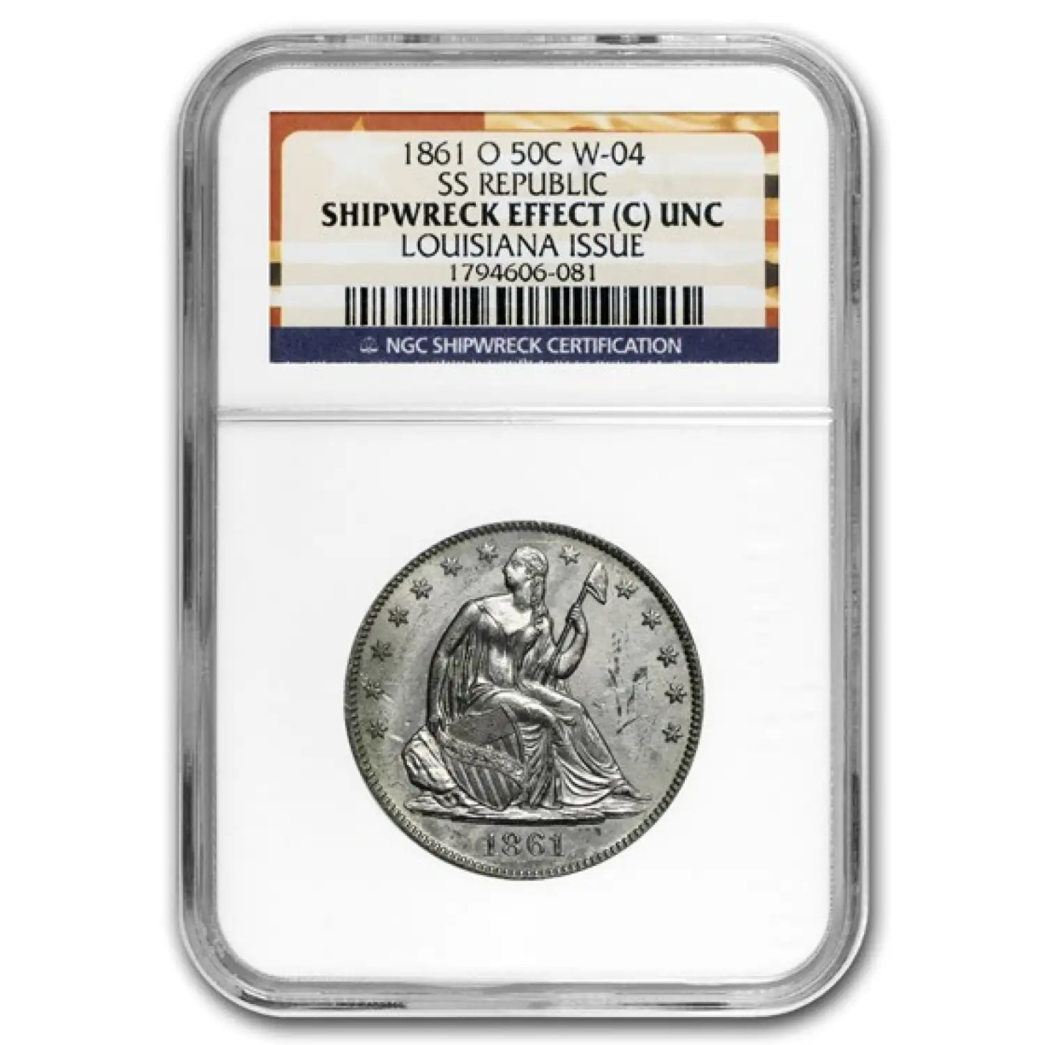1860/1861 O Half Dollars Liberty Seated NGC Uncirculated SS REPUBLIC New Orleans 3 Coin Set Shipwreck Effect
