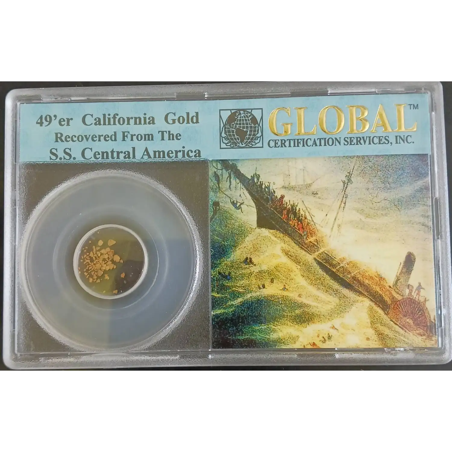 The SS Central America is potentially the most legendary shipwreck in numismatic circles, dubbed at the time of it's discovery as 'The Greatest Treasure Ever Found!' It met it's fate when it sunk off the coast of the Carolinas during a hurricane on September 12, 1857 - and wasn't rediscovered until a treasure hunting exposition 140 years later. Aboard the ship was more than $1.6 million dollars in authentic California Gold Rush gold, including this amazing 'double pinch' of California Gold Dust.