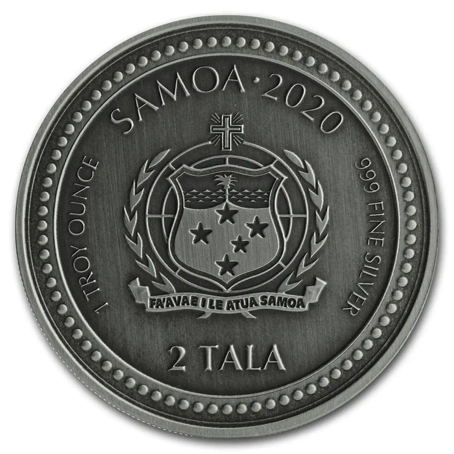 This is one of several coins in the 2020 Serpent of Milan collection, issued by the Samoan government in partnership with the Scottsdale Mint. This series embodies the history and design of Middle Age Milan. The historic image depicted on the 1 oz Silver coin is the emblem of the illustrious Visconti of Milan, one of Italy's most powerful families. The Visconti coat of arms features the 'Biscione' serpent swallowing a child. This symbol can be found today in select Milanese locations, and is also featured within the logo of Italian automobile maker Alfa Romeo.