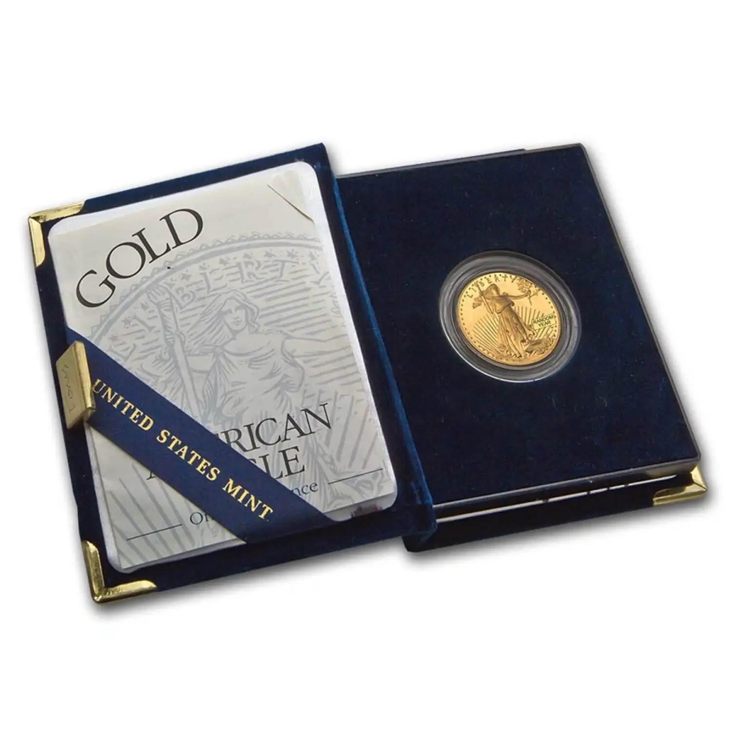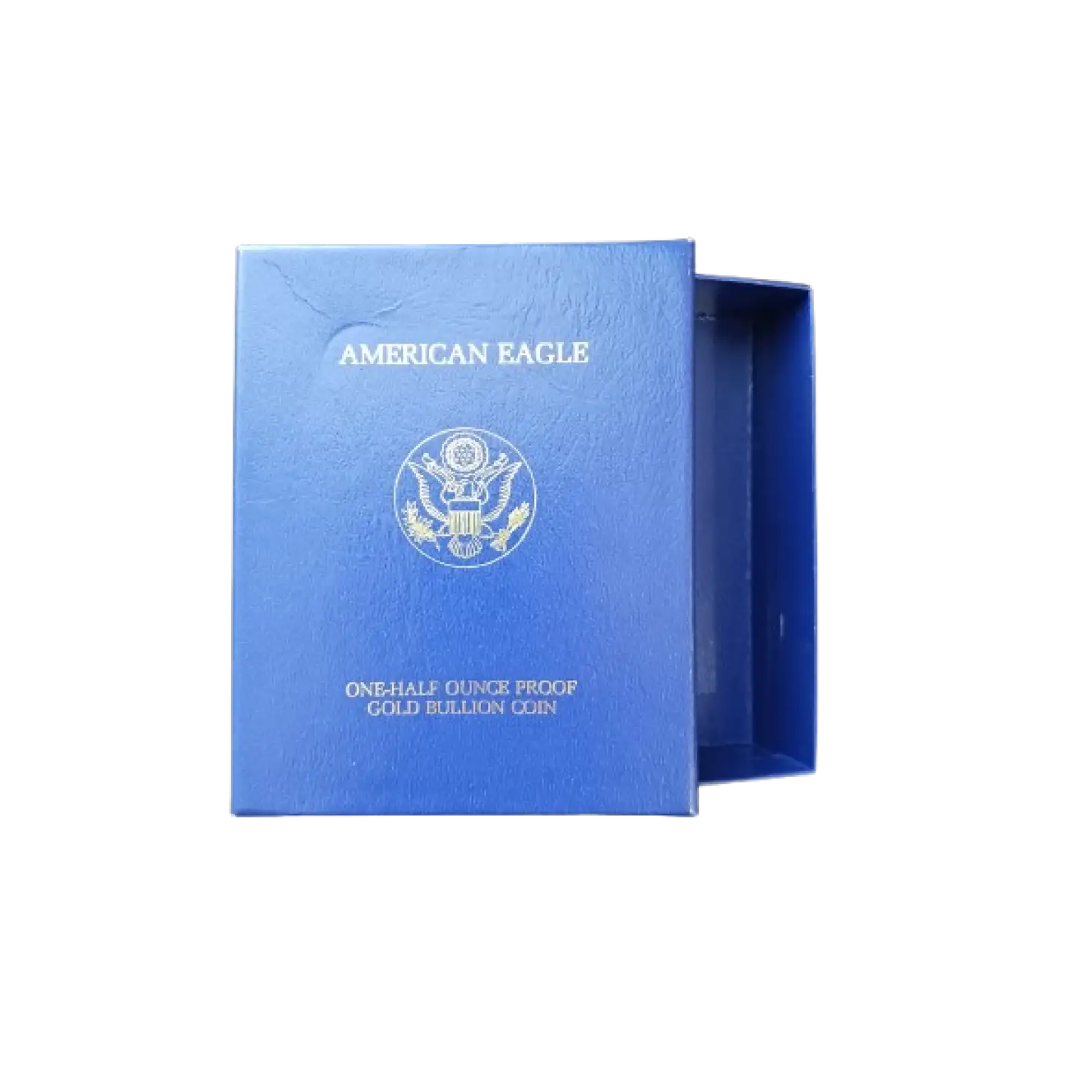 In this product listing you’ll receive a 1/2 oz Proof American Gold Eagle in its original US Mint box with a Certificate of Authenticity. 1/2 oz Gold Eagles were originally produced by the Philadelphia Mint from 1987 until 1993 featuring the “P” mint mark. Starting in 1994 and continuing today, the 1/2 oz Gold Eagle is produced at the West Point Mint with a “W” mint mark.